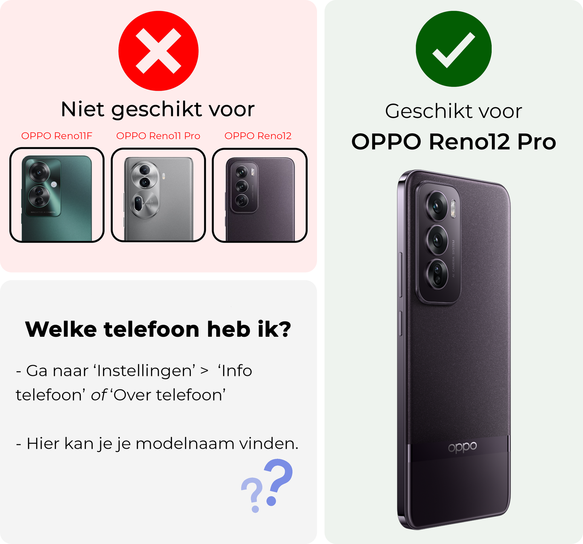 Dit hoesje is verkrijgbaar in verschillende kleuren, zodat je eenvoudig een stijl kiest die bij je past. Ga voor een neutrale tint voor een subtiele look of kies een opvallende kleur om je OPPO Reno 12 Pro een persoonlijke touch te geven. Voor wie het originele design van de telefoon wil behouden, is er ook een transparante variant beschikbaar.