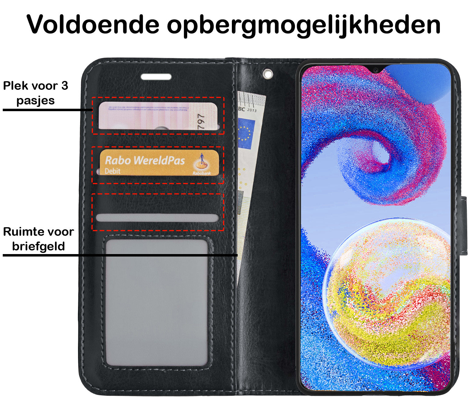 Samsung A04s Hoesje Bookcase Cover met Kaarthouder - Zwart