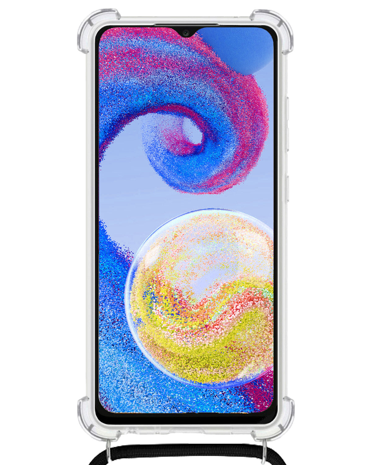 Maak je ervaring compleet met dit stevige en functionele shockproof hoesje met koord voor de Samsung A04s. **Bestel nu en geniet van de perfecte balans tussen bescherming, gemak en stijl!**