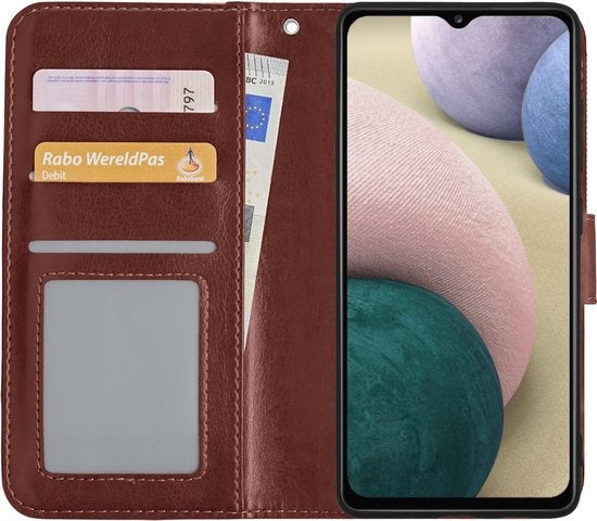 Samsung A12 Hoesje Bookcase Cover met Kaarthouder - Bruin