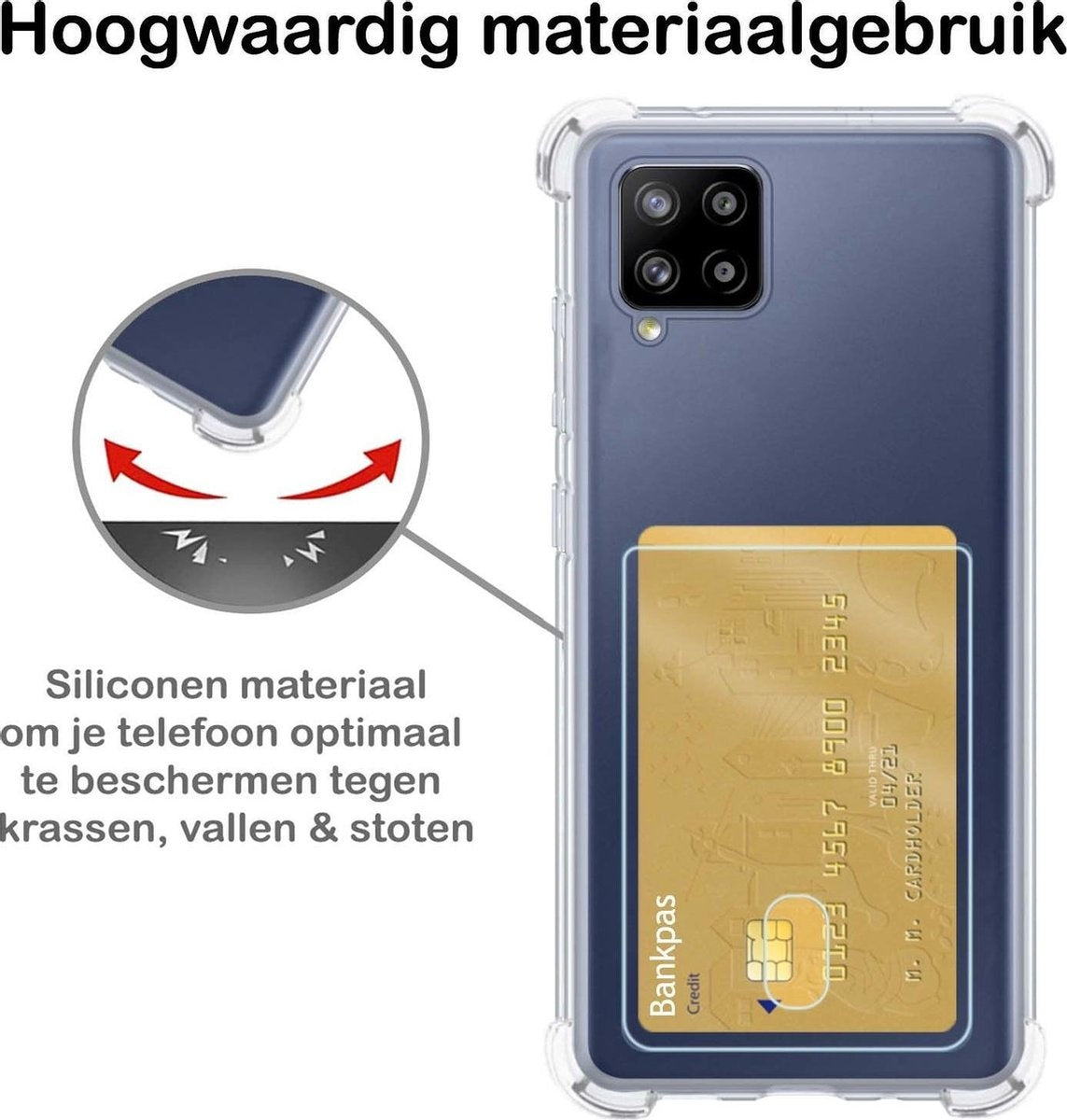 Samsung A12 Hoesje Kaarthouder Backcover Shockproof - Transparant
