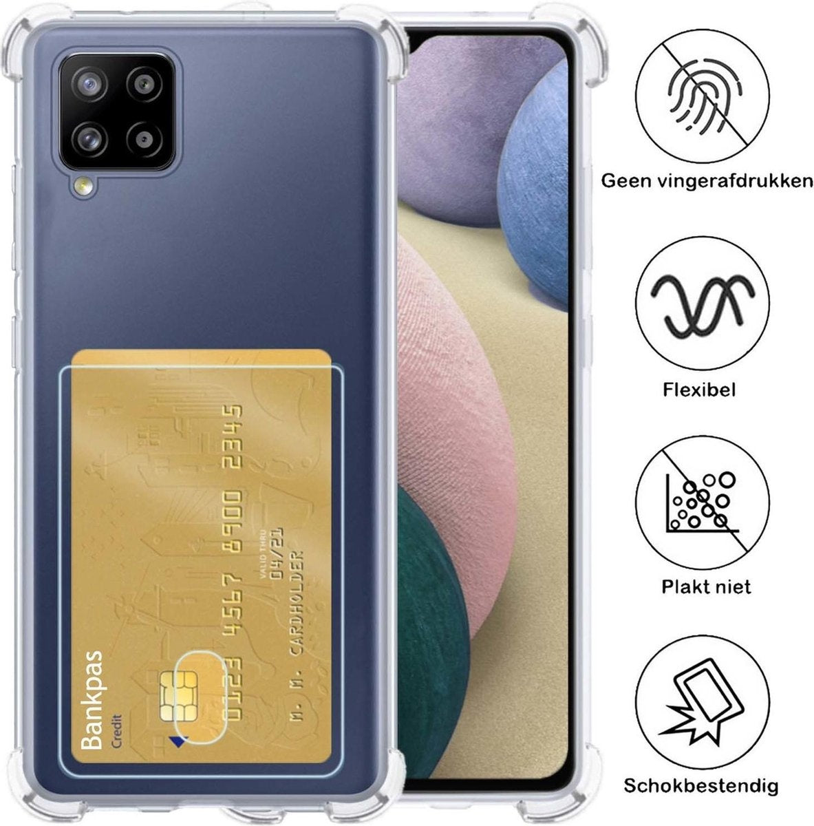 Stevig en praktisch shockproof hoesje met pashouder voor de Samsung A12