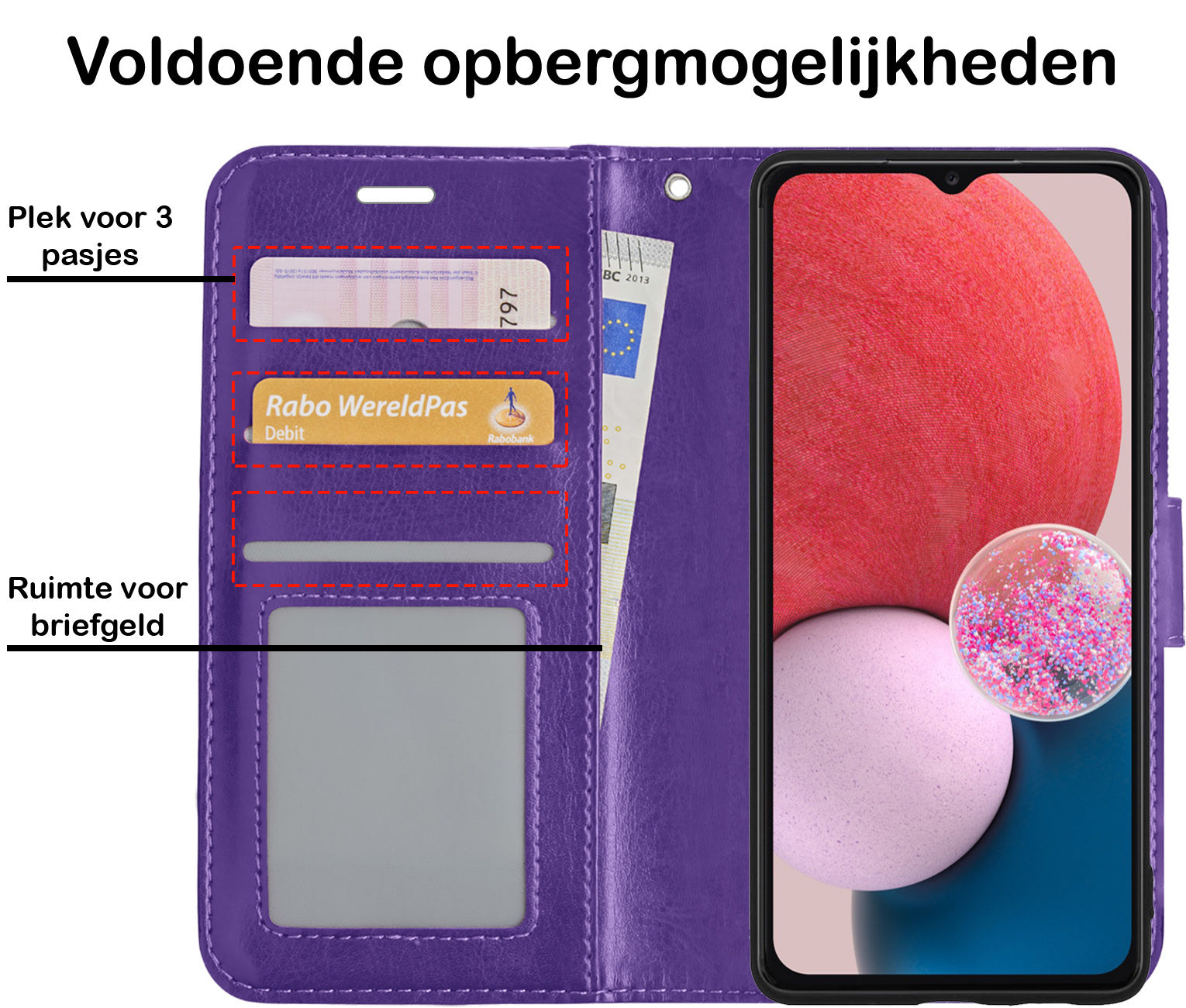 Samsung A13 4G Hoesje Bookcase Cover met Kaarthouder - Paars