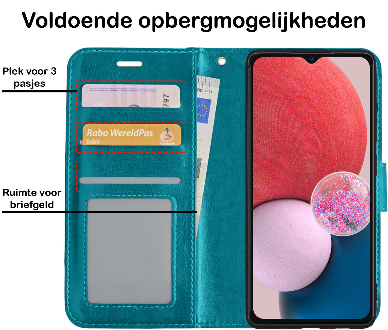- Ruimte voor pasjes en briefgeld