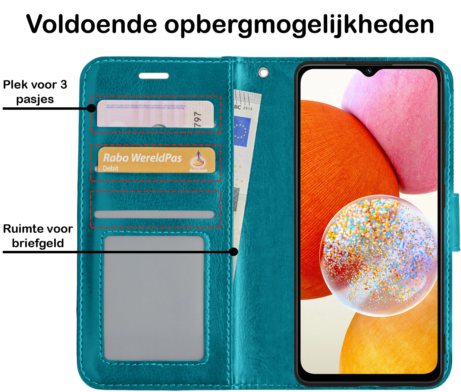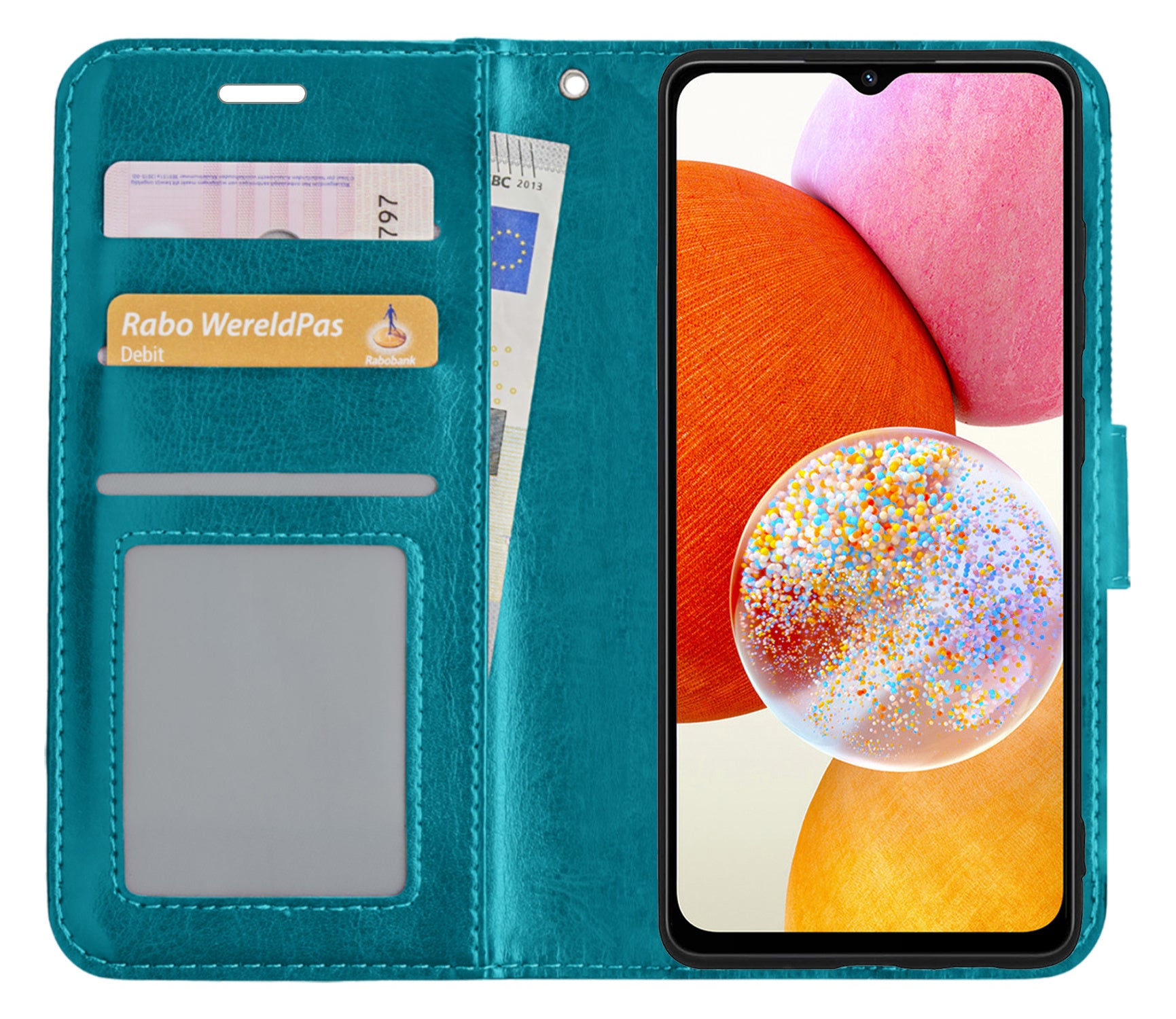 Samsung A14 Hoesje Bookcase Cover met Kaarthouder - Turquoise