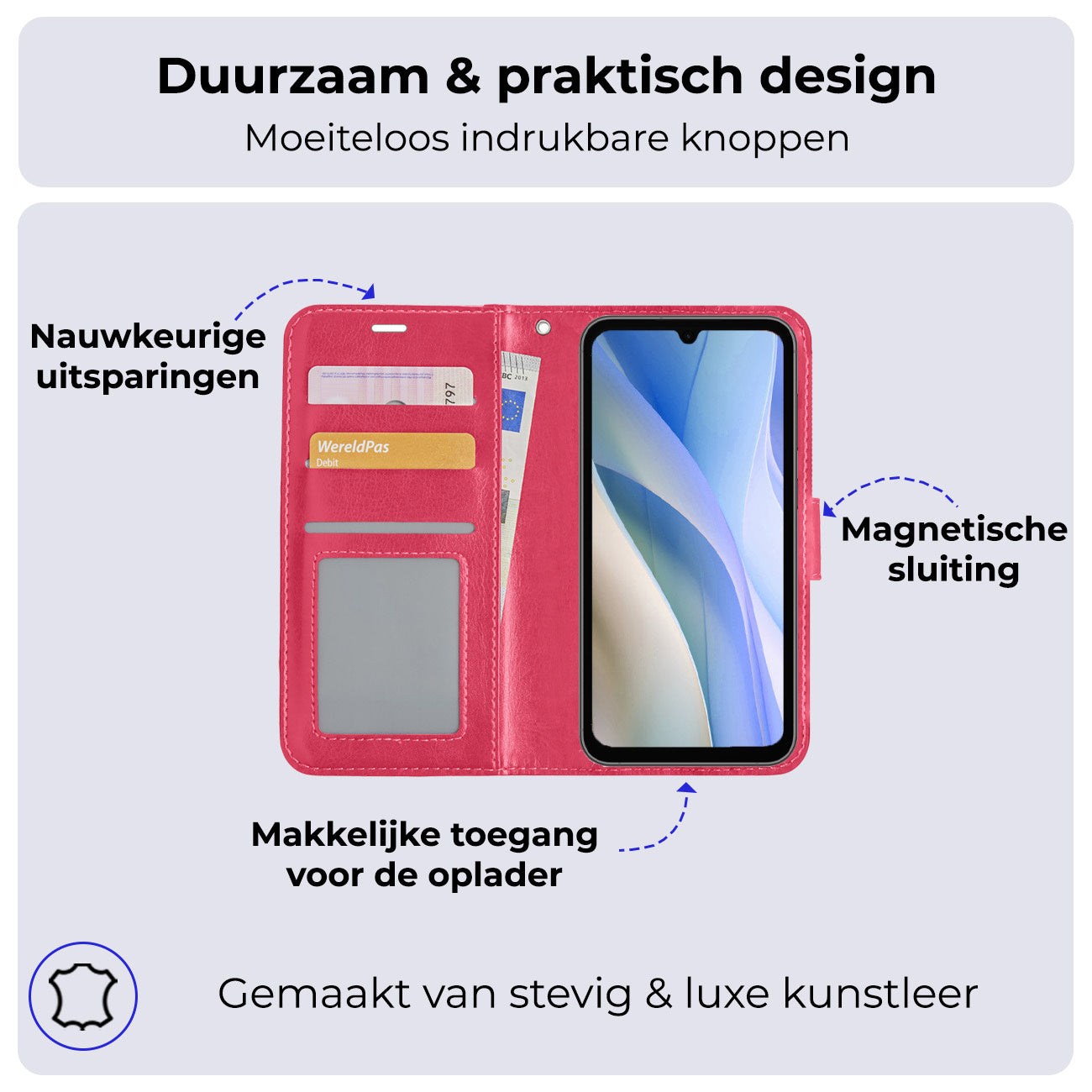 Samsung A15 Hoesje Bookcase Cover met Kaarthouder - Donkerroze