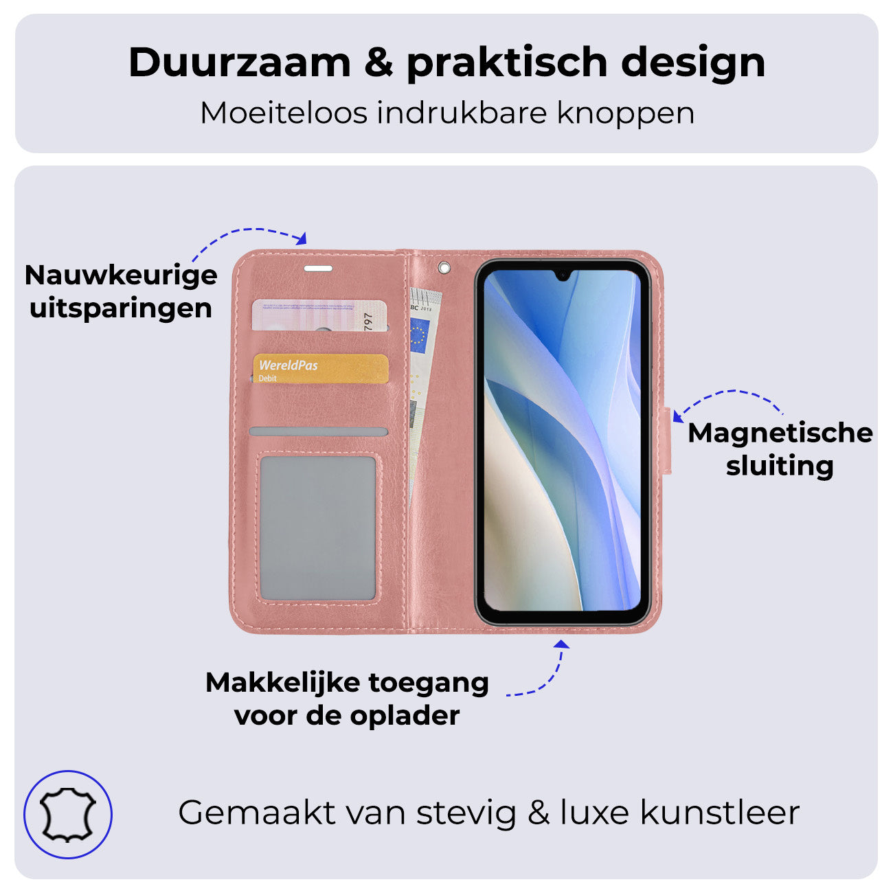 - Ruimte voor pasjes en briefgeld