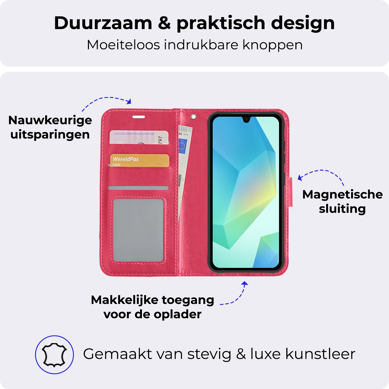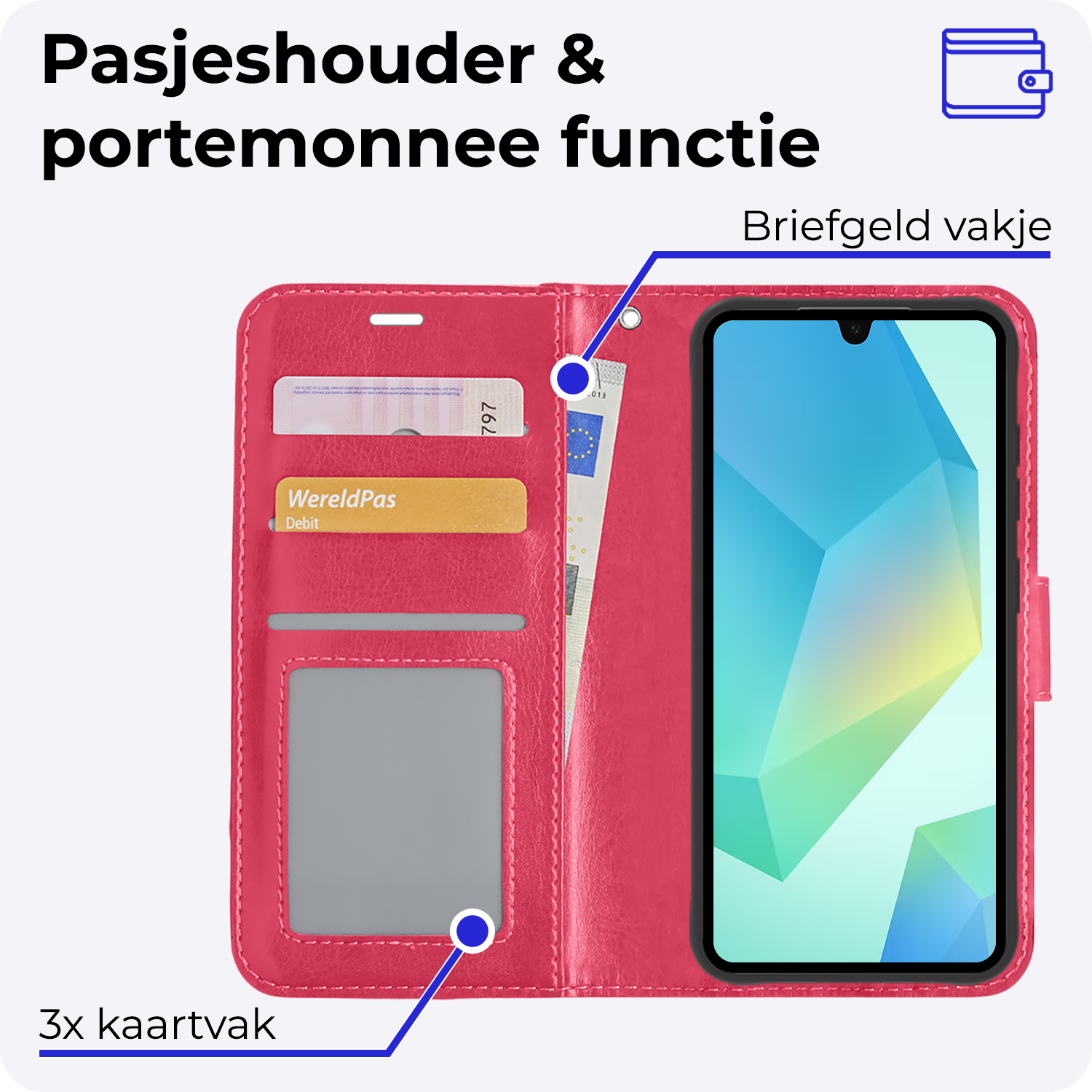 Samsung A16 Hoesje Bookcase Cover met Kaarthouder - Donkerroze