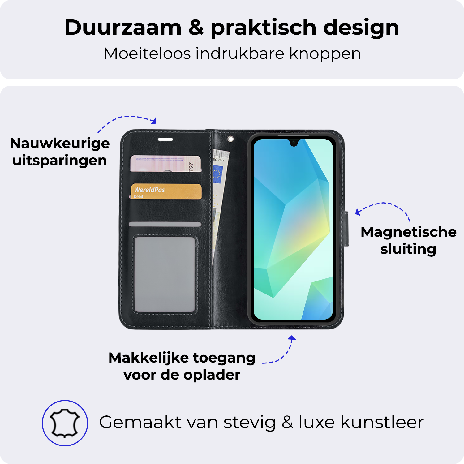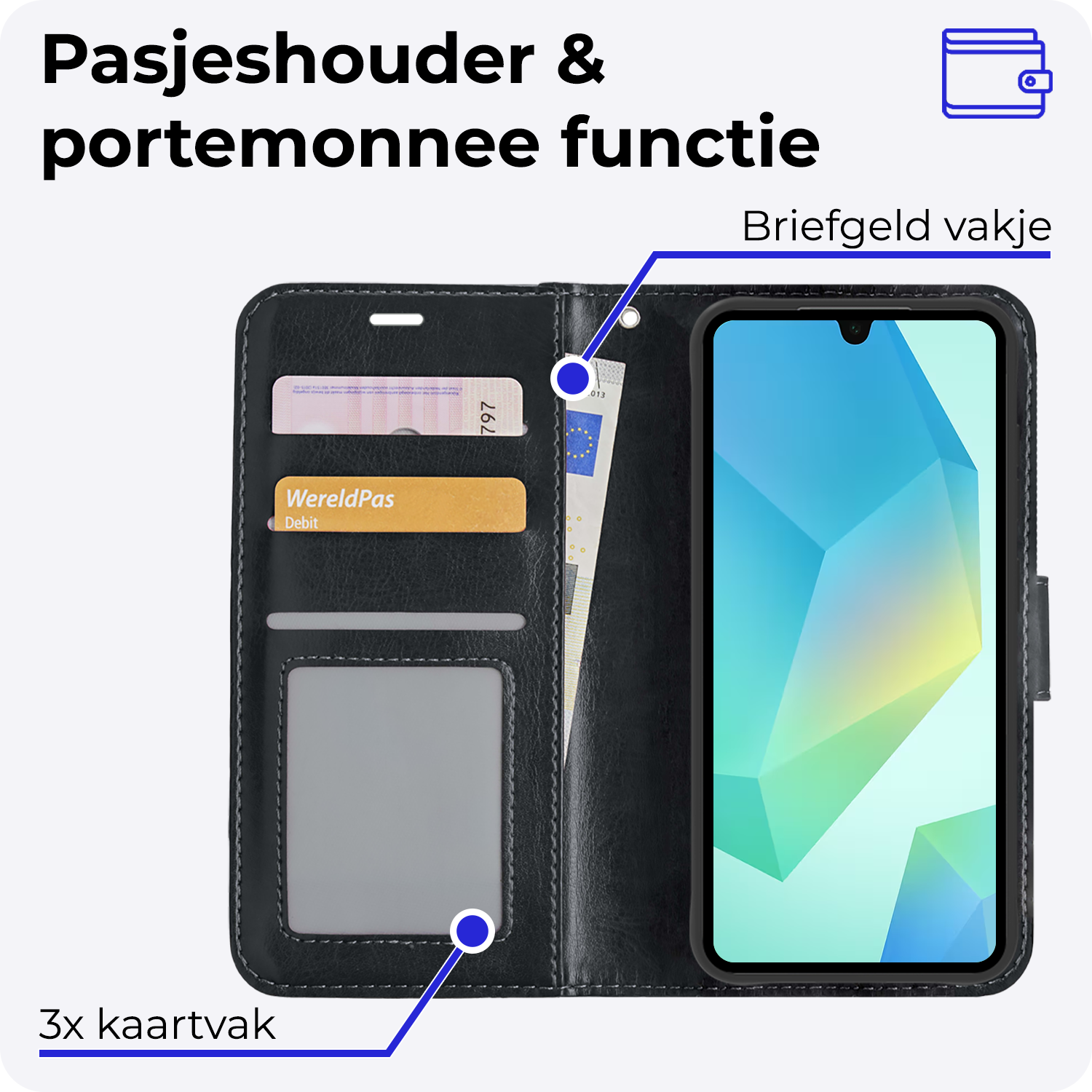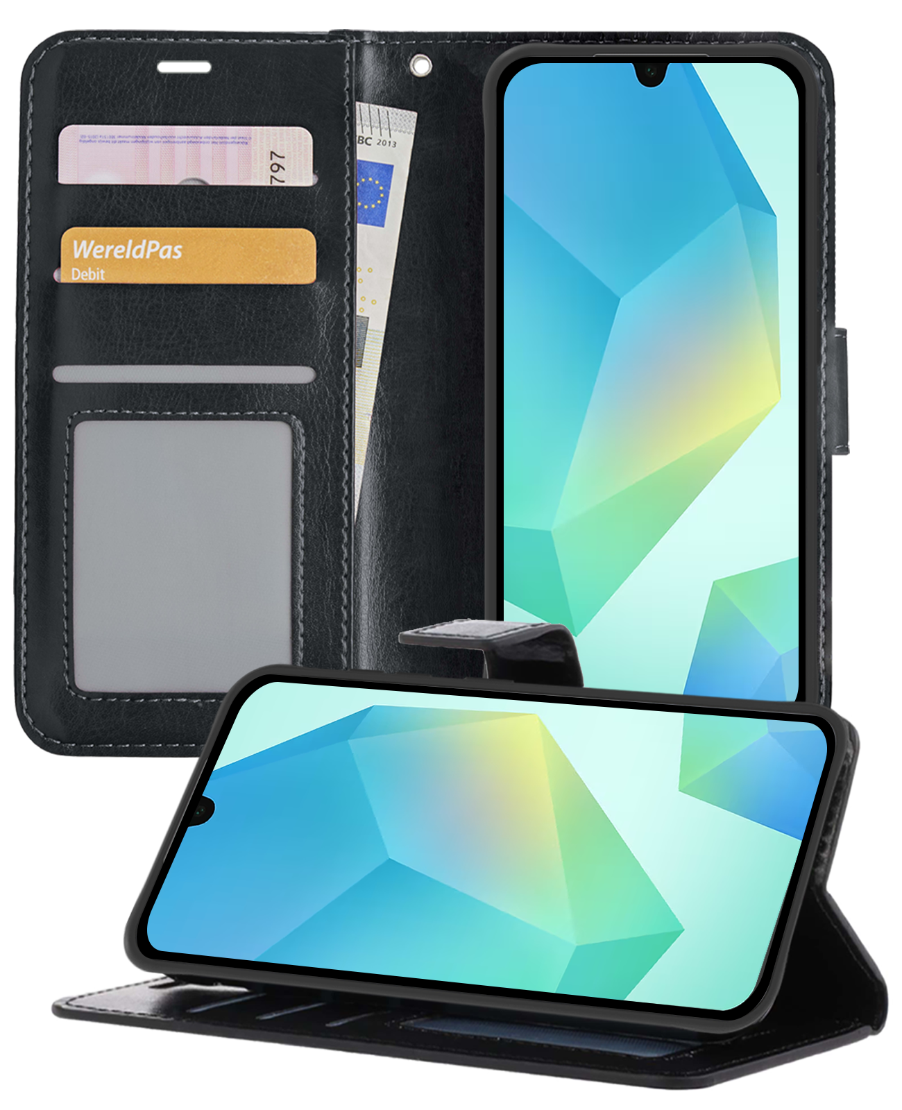 Samsung A16 Hoesje Bookcase Cover met Kaarthouder - Zwart