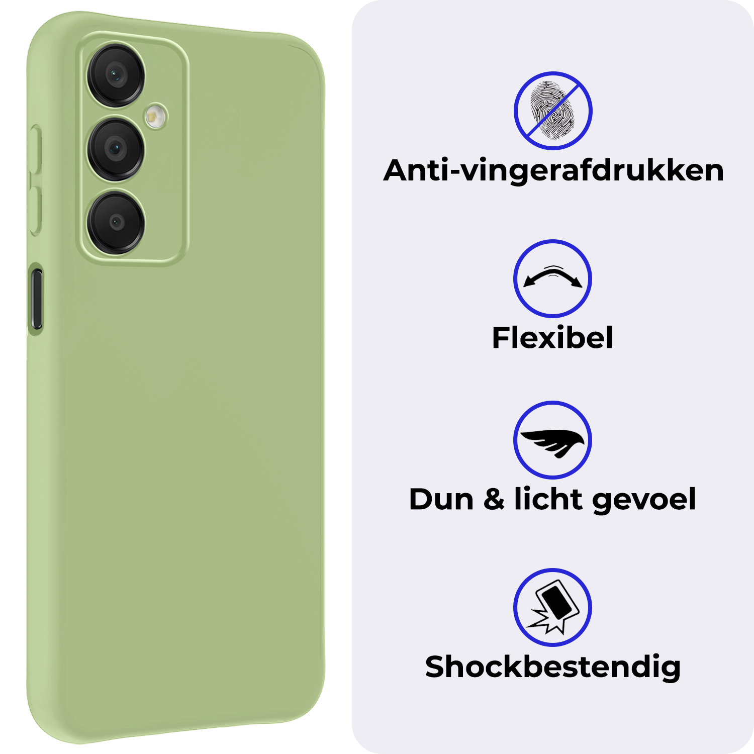 Dit siliconen hoesje voor de Samsung A16 is gemaakt van flexibel en schokabsorberend TPU-materiaal, waardoor het je toestel optimaal beschermt tegen vallen en stoten. De verhoogde randen rond het scherm en de camera voorkomen directe contactschade bij neerleggen op vlakke oppervlakken. Bovendien is het siliconen materiaal scheur- en slijtvast, wat een lange levensduur garandeert.