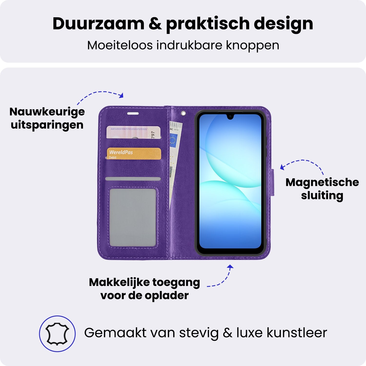 - Ruimte voor pasjes en briefgeld