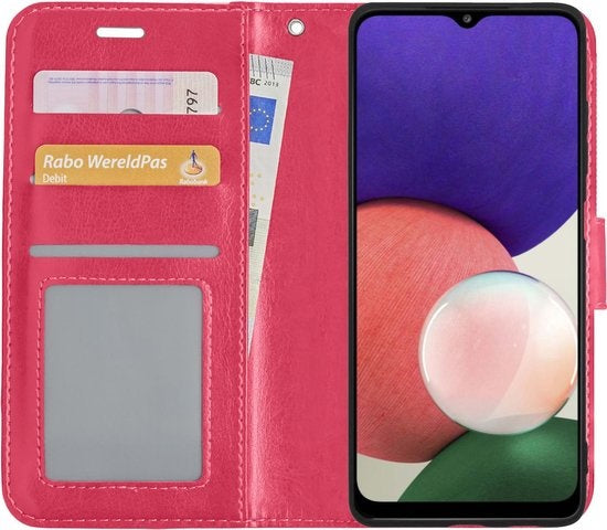 Samsung A22 5G Hoesje Bookcase Cover met Kaarthouder - Donkerroze
