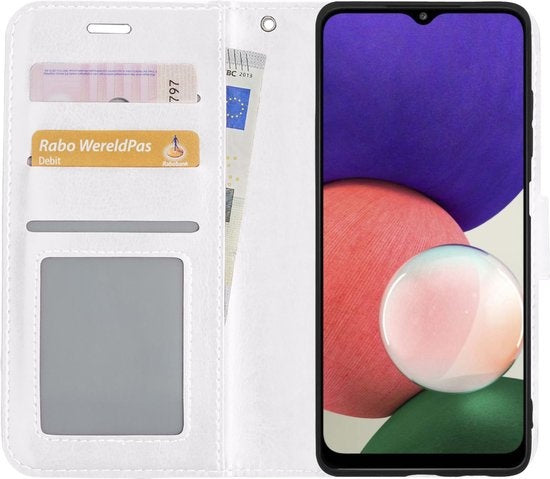 Samsung A22 5G Hoesje Bookcase Cover met Kaarthouder - Wit