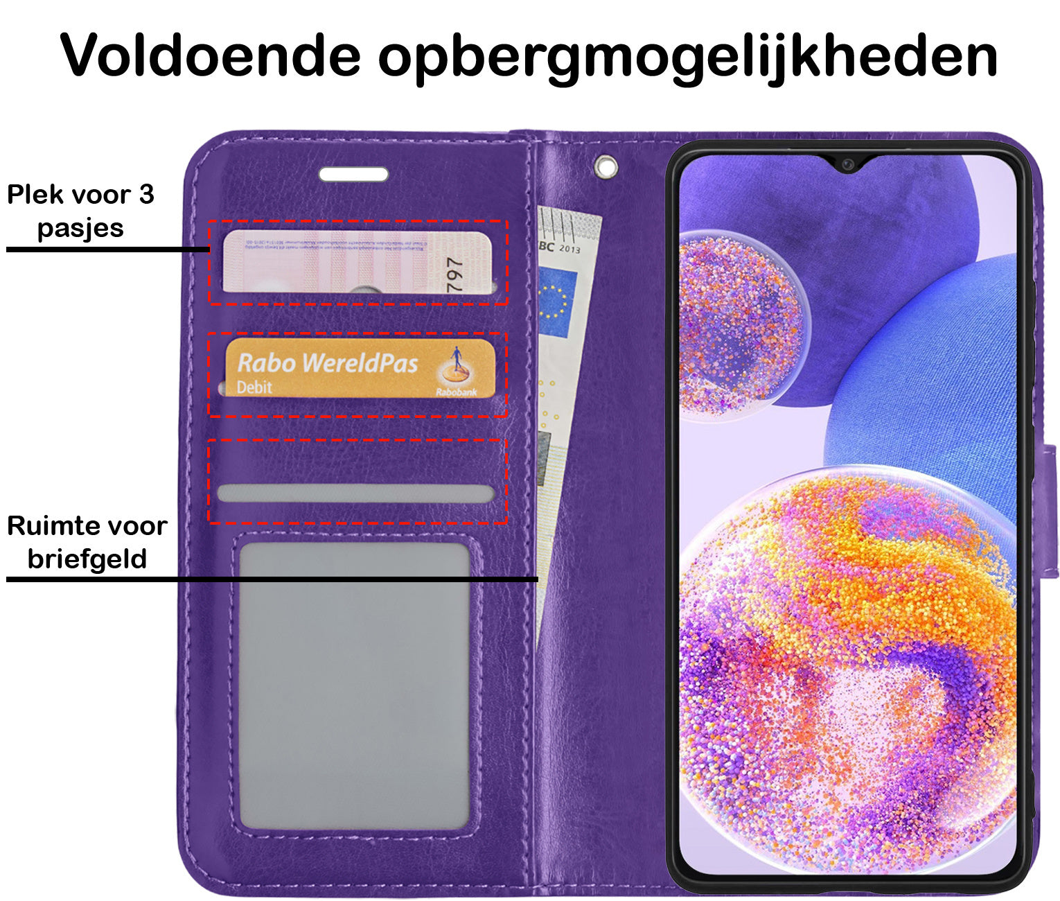 Samsung A23 Hoesje Bookcase Cover met Kaarthouder - Paars