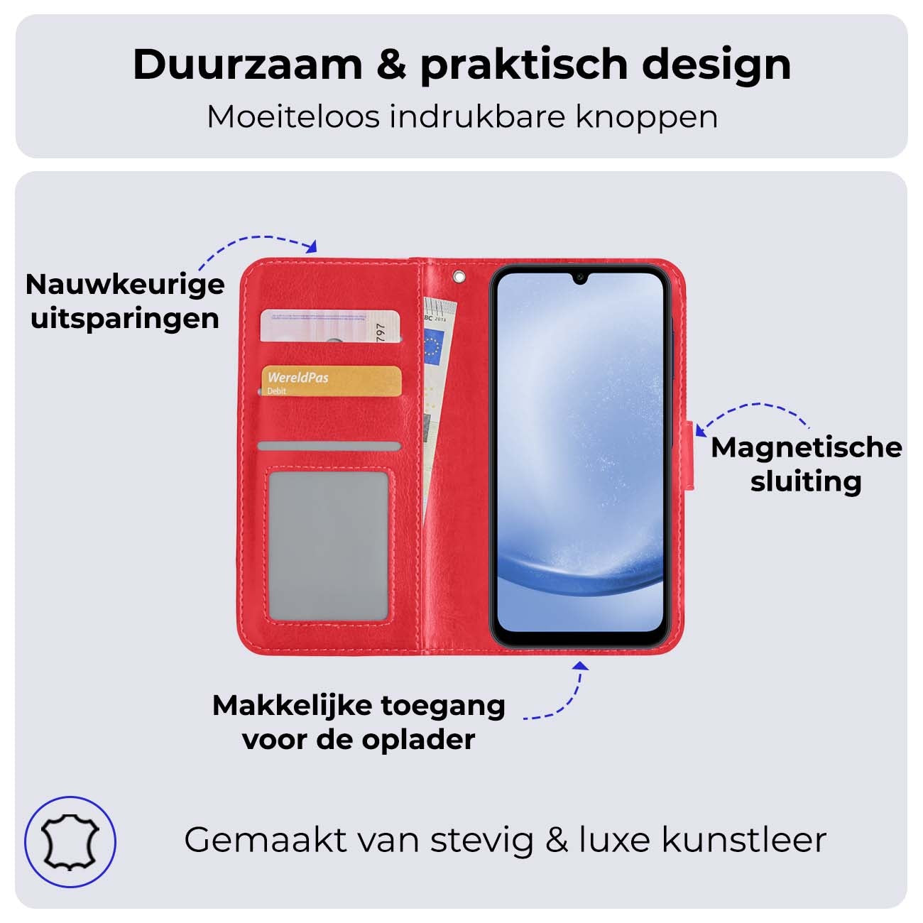 - Ruimte voor pasjes en briefgeld