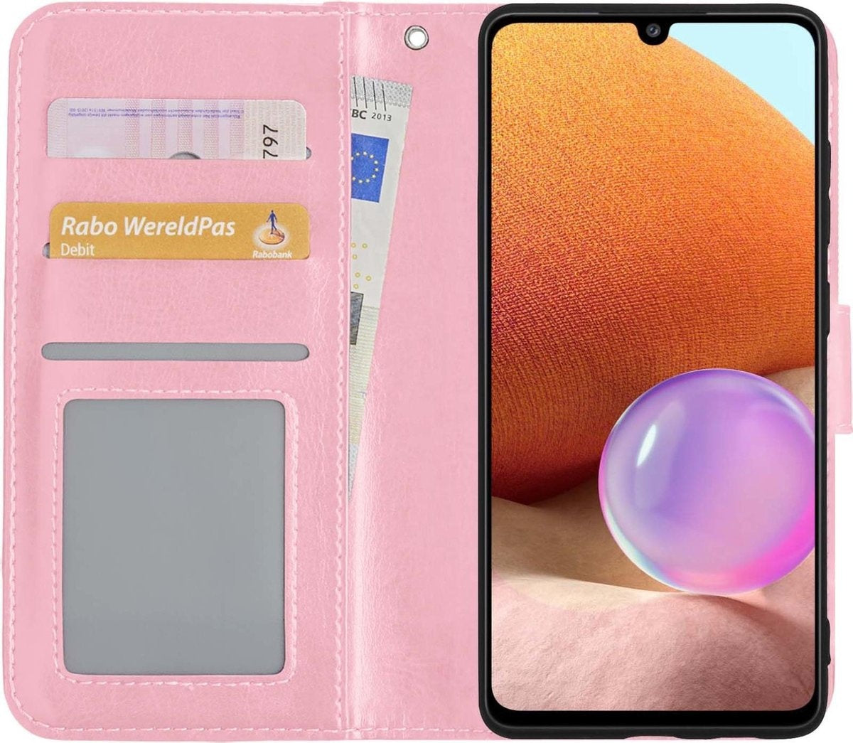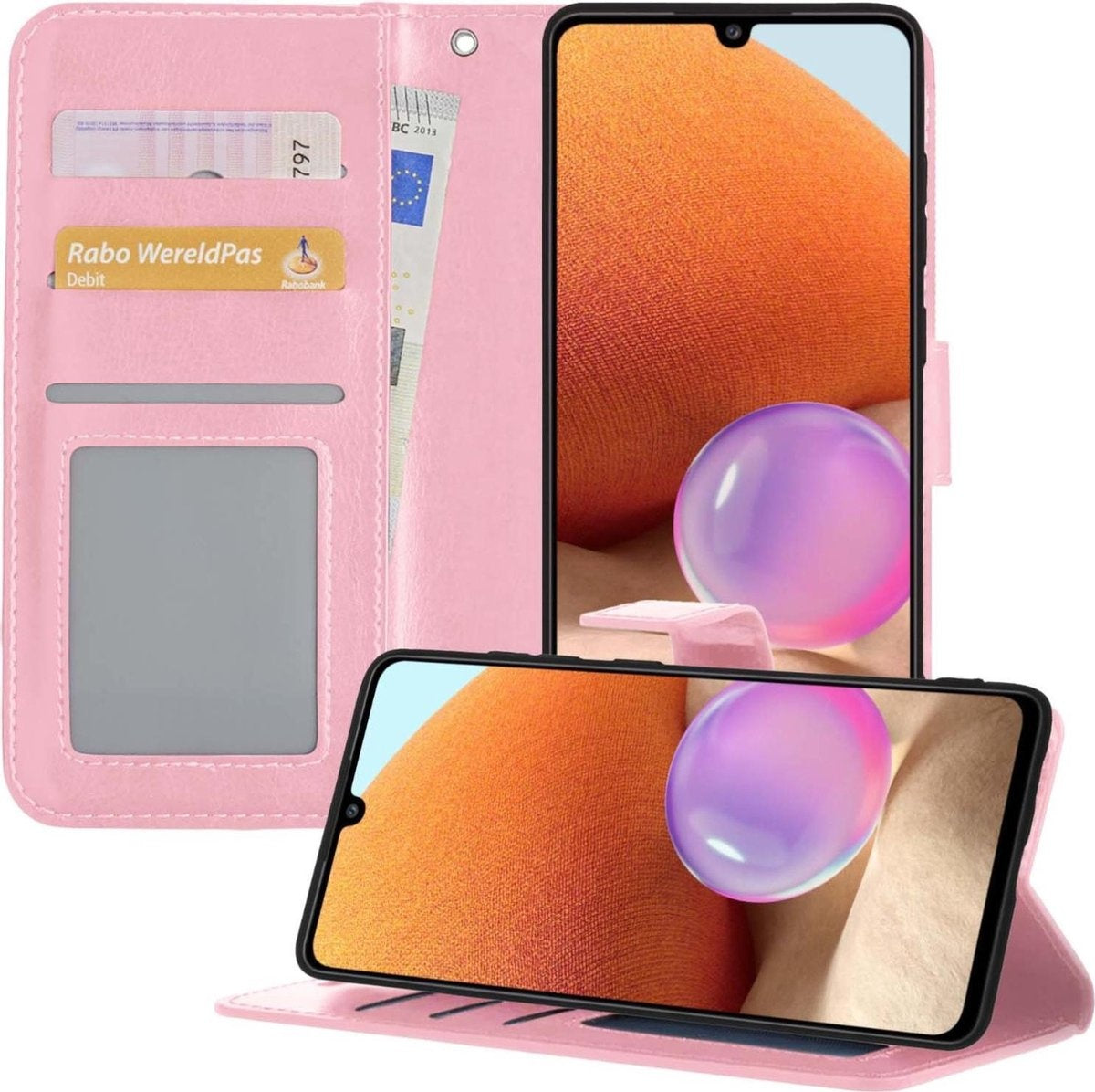 Samsung A32 5G Hoesje Bookcase Cover met Kaarthouder - Lichtroze