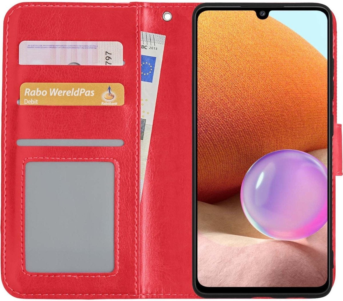 Samsung A32 5G Hoesje Bookcase Cover met Kaarthouder - Rood