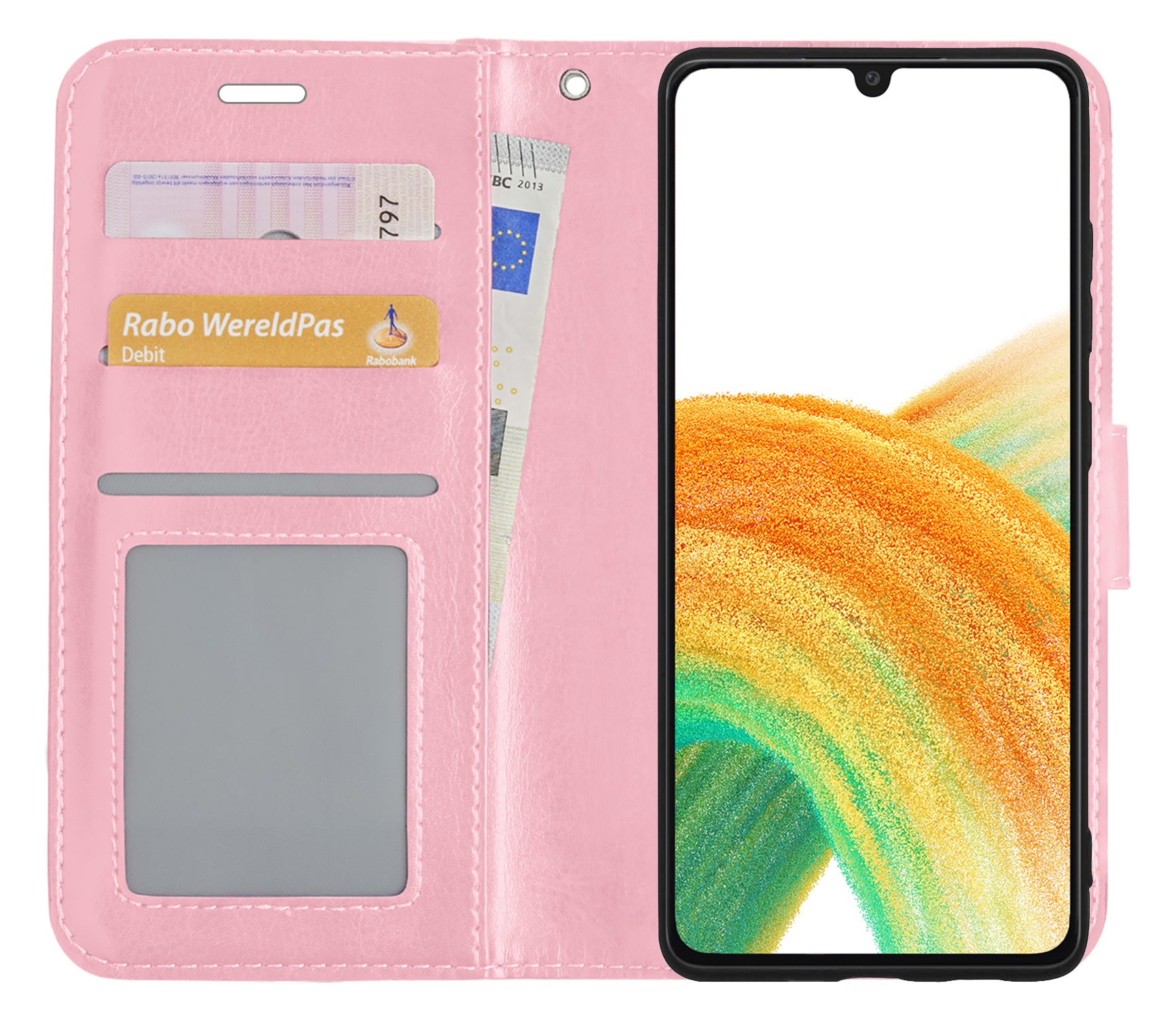 Samsung A33 Hoesje Bookcase Cover met Kaarthouder - Lichtroze