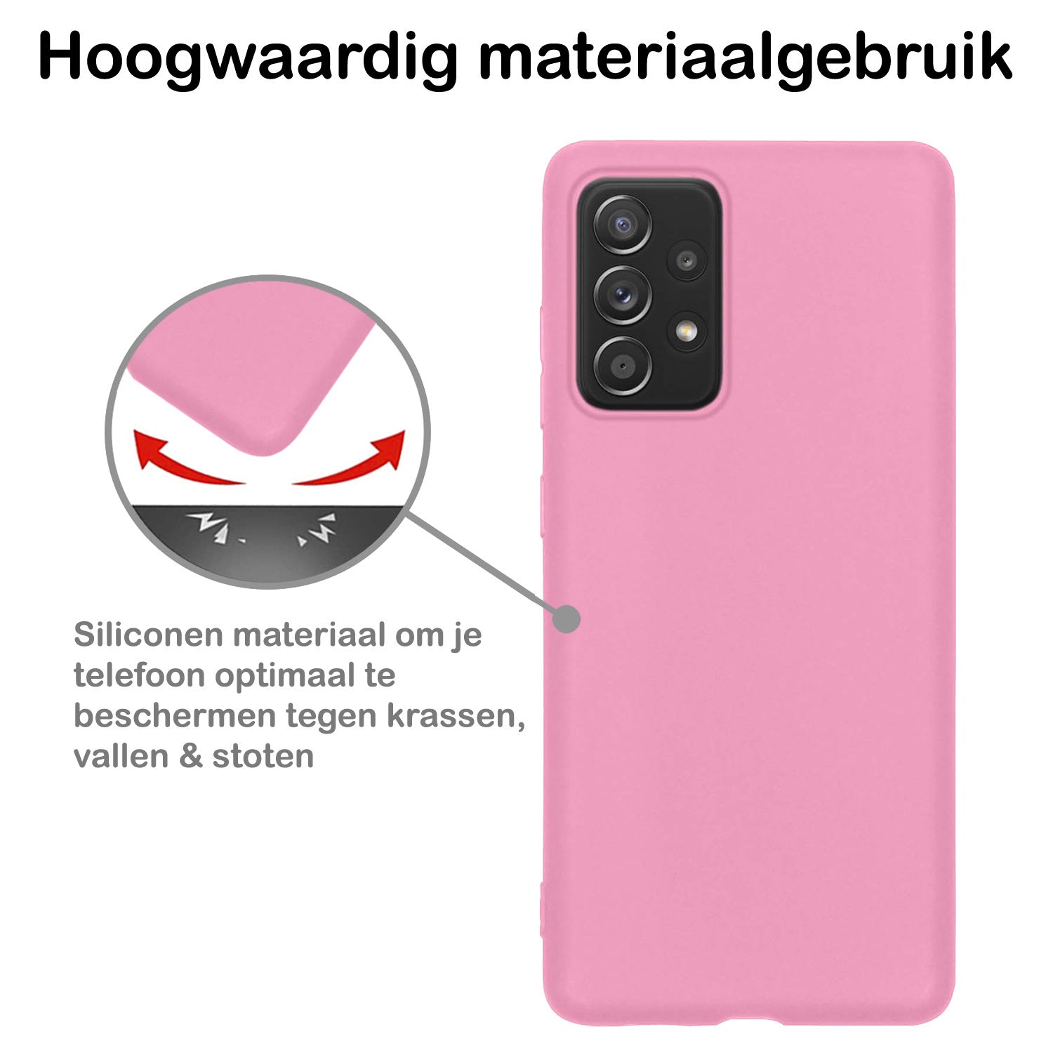 Dit siliconen hoesje voor de Samsung A33 is gemaakt van flexibel en schokabsorberend TPU-materiaal, waardoor het je toestel optimaal beschermt tegen vallen en stoten. De verhoogde randen rond het scherm en de camera voorkomen directe contactschade bij neerleggen op vlakke oppervlakken. Bovendien is het siliconen materiaal scheur- en slijtvast, wat een lange levensduur garandeert.