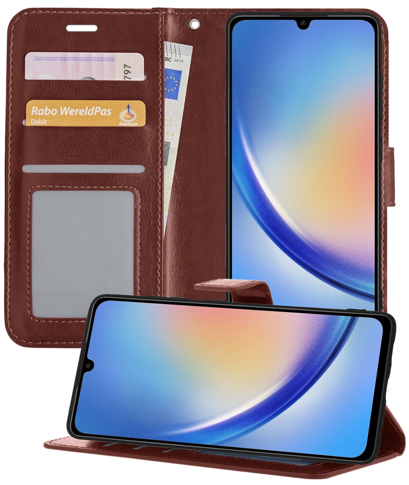 Samsung A34 Hoesje Bookcase Cover met Kaarthouder - Bruin