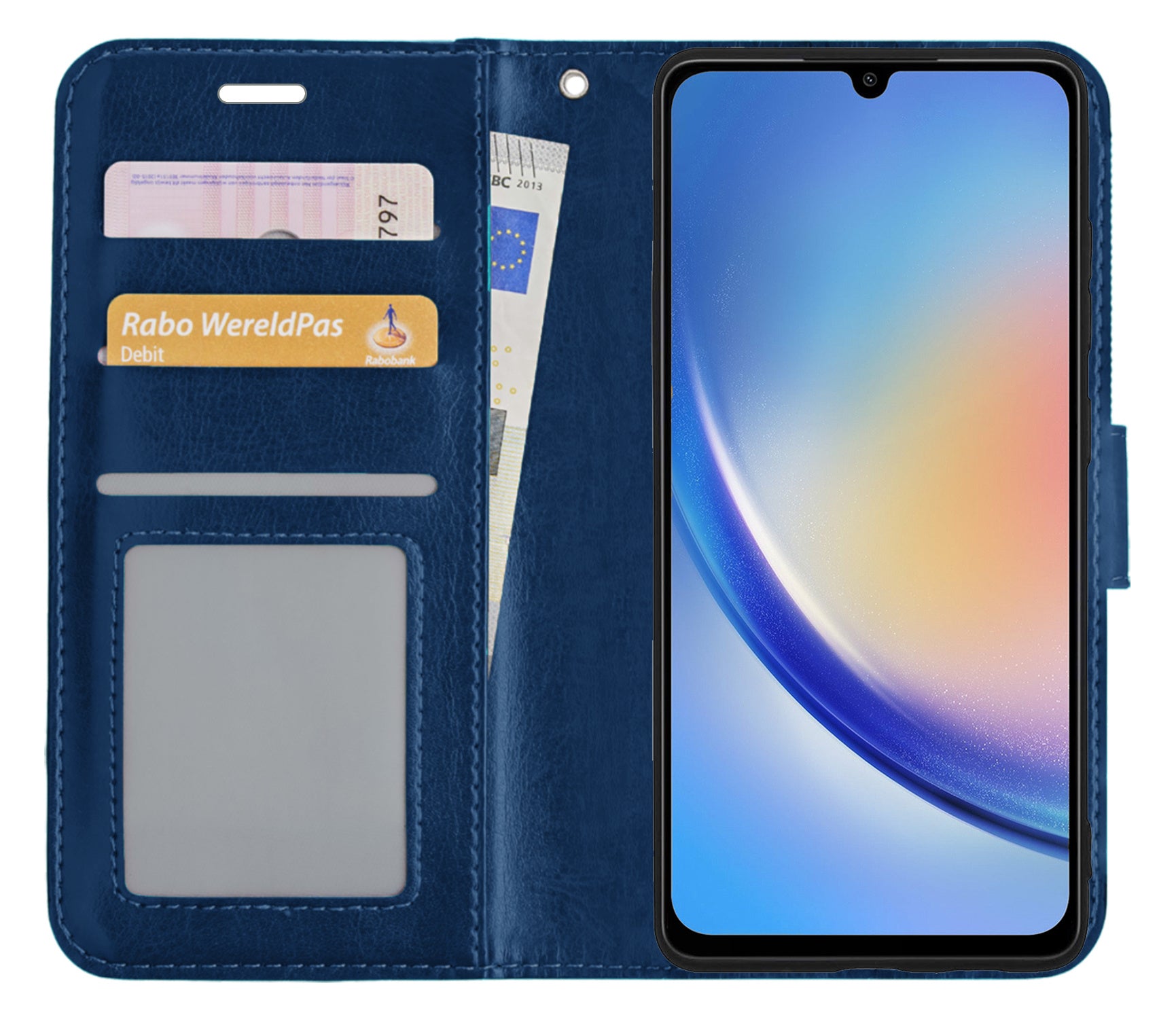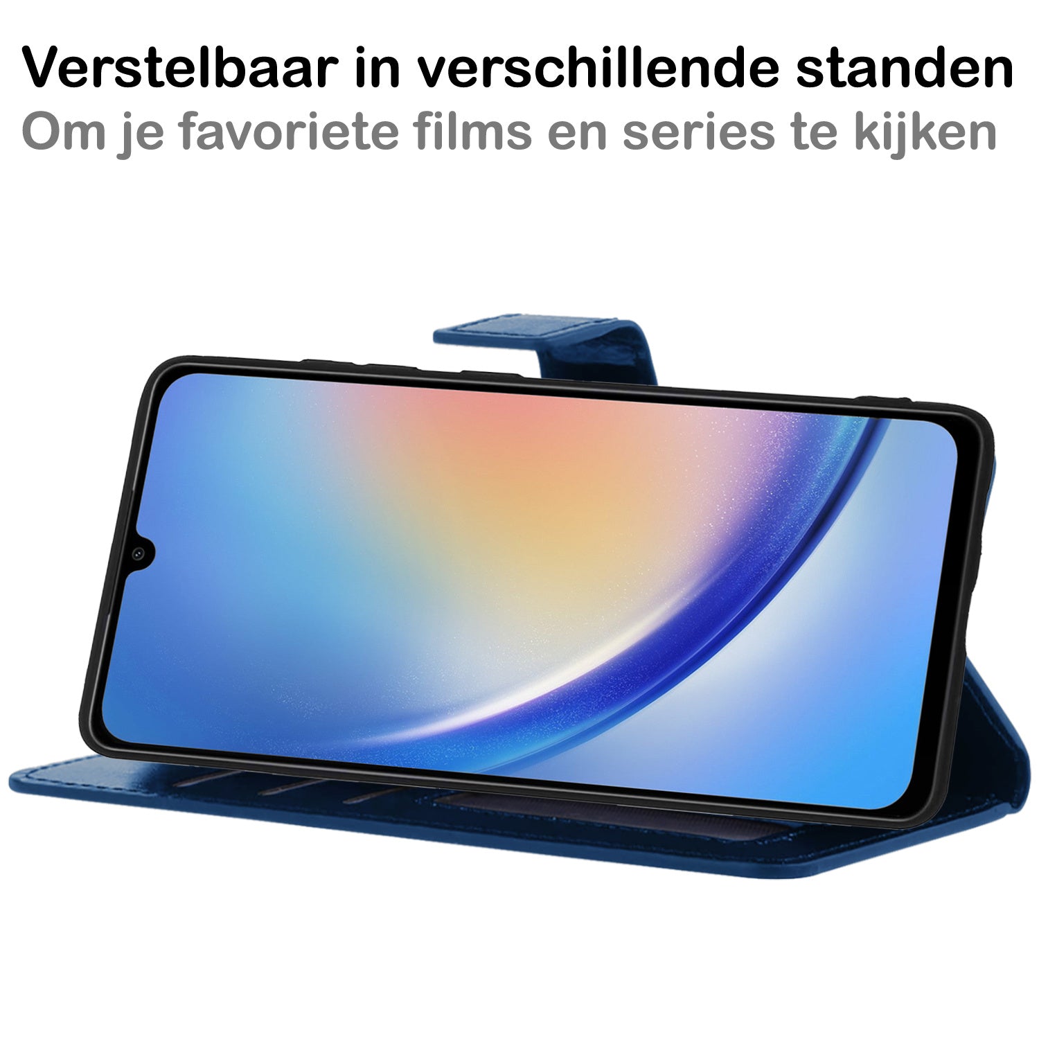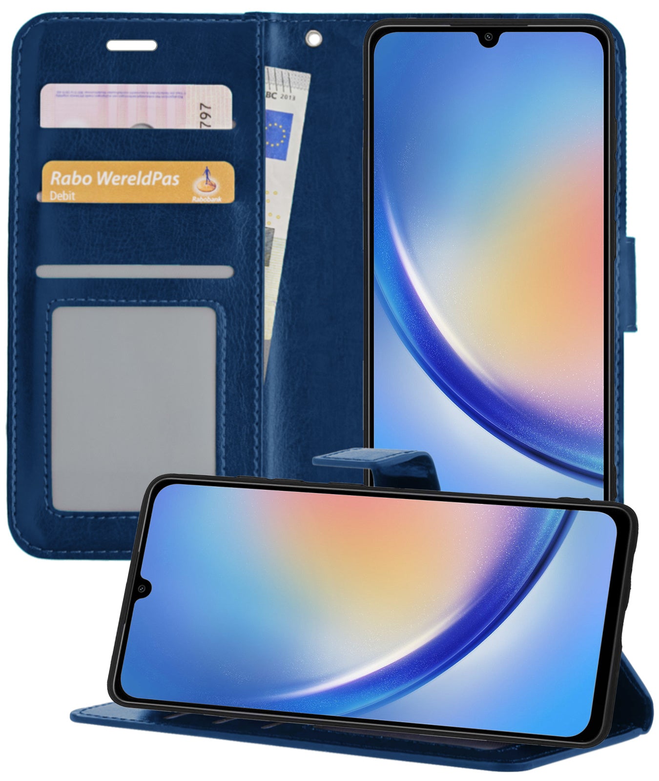 Samsung A34 Hoesje Bookcase Cover met Kaarthouder - Donkerblauw