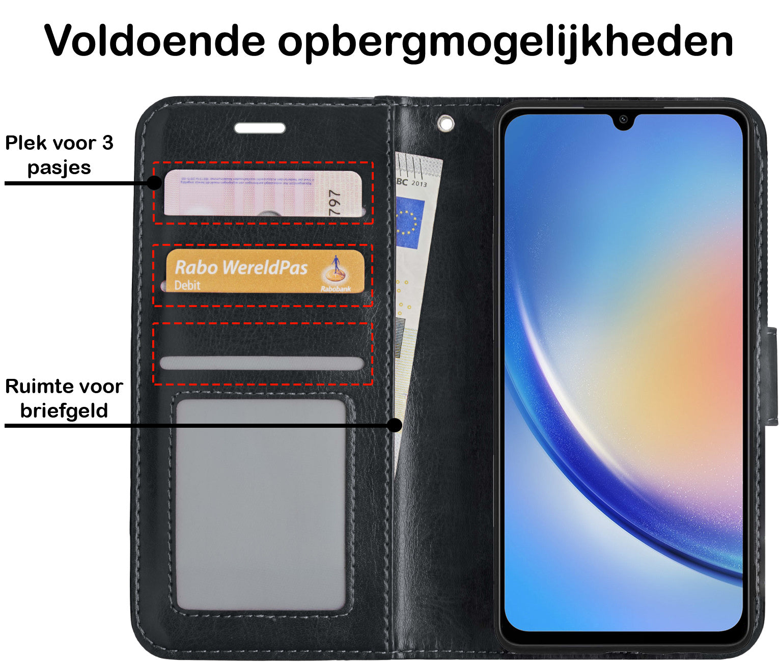 Samsung A34 Hoesje Bookcase Cover met Kaarthouder - Zwart