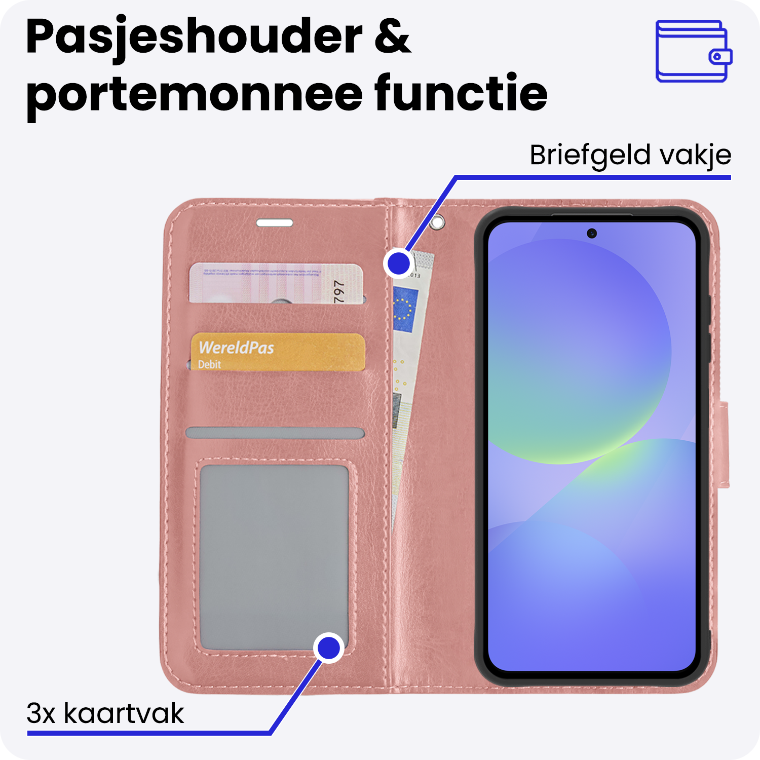 - Ruimte voor pasjes en briefgeld