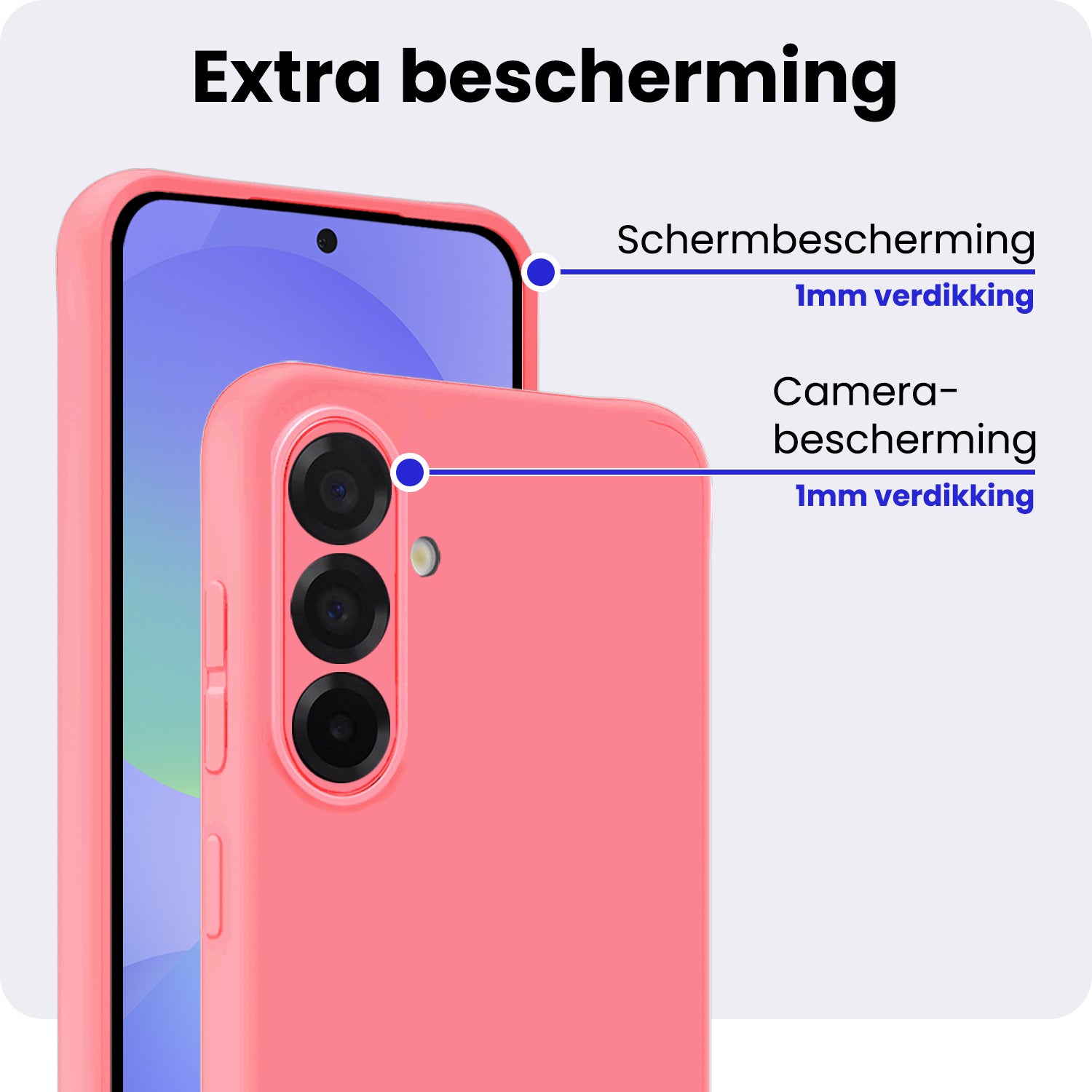 Dit siliconen hoesje voor de Samsung A36 is gemaakt van flexibel en schokabsorberend TPU-materiaal, waardoor het je toestel optimaal beschermt tegen vallen en stoten. De verhoogde randen rond het scherm en de camera voorkomen directe contactschade bij neerleggen op vlakke oppervlakken. Bovendien is het siliconen materiaal scheur- en slijtvast, wat een lange levensduur garandeert.