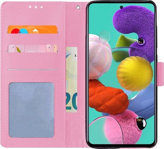 Samsung A51 Hoesje Bookcase Cover met Kaarthouder - Lichtroze