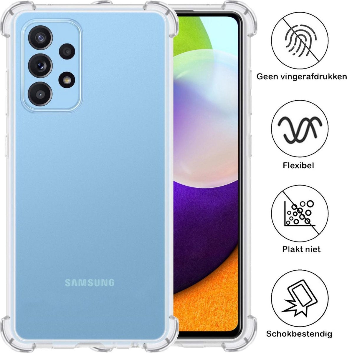 Maak je telefoonervaring compleet met dit stevige en moderne shockproof hoesje. Bestel nu en zorg ervoor dat je Samsung A52 altijd beschermd is tegen dagelijkse gevaren!