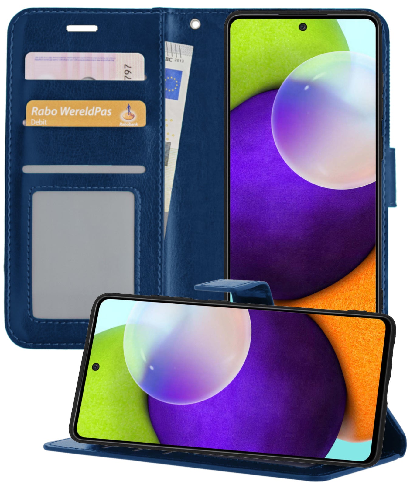 Samsung A52/A52s 5G Hoesje Bookcase Cover met Kaarthouder - Donkerblauw