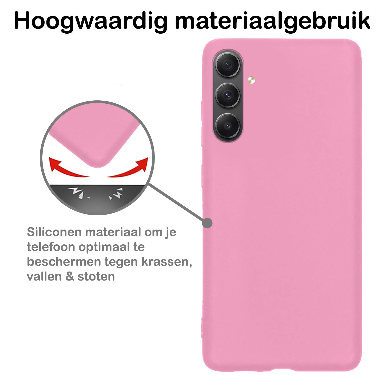 Dit siliconen hoesje voor de Samsung A54 is gemaakt van flexibel en schokabsorberend TPU-materiaal, waardoor het je toestel optimaal beschermt tegen vallen en stoten. De verhoogde randen rond het scherm en de camera voorkomen directe contactschade bij neerleggen op vlakke oppervlakken. Bovendien is het siliconen materiaal scheur- en slijtvast, wat een lange levensduur garandeert.