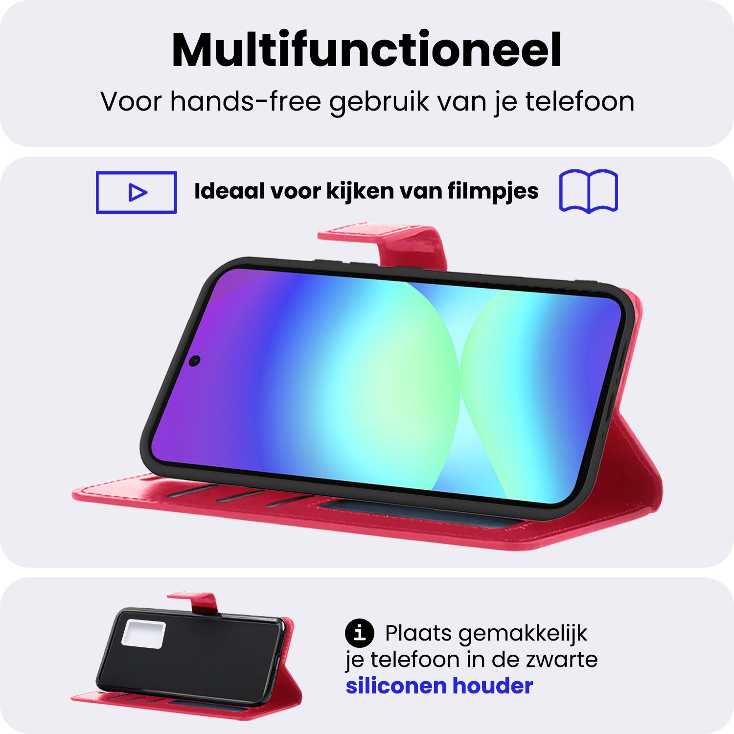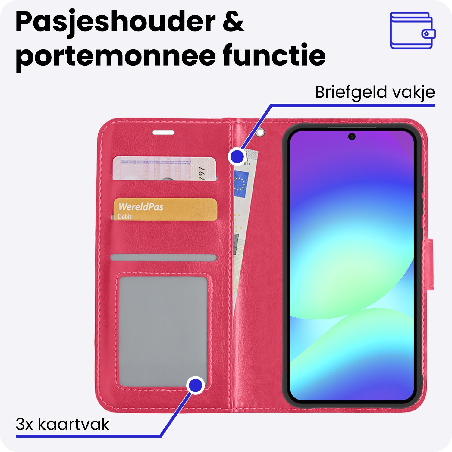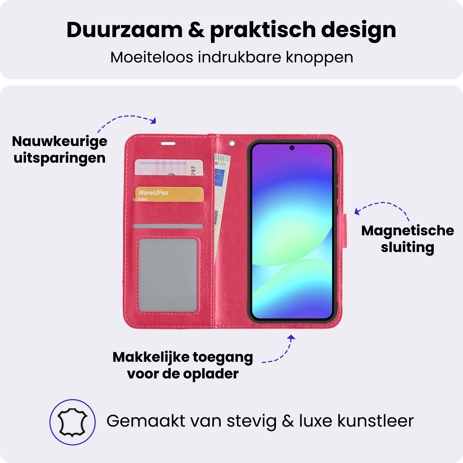 Samsung A56 Hoesje Bookcase Cover met Kaarthouder - Donkerroze