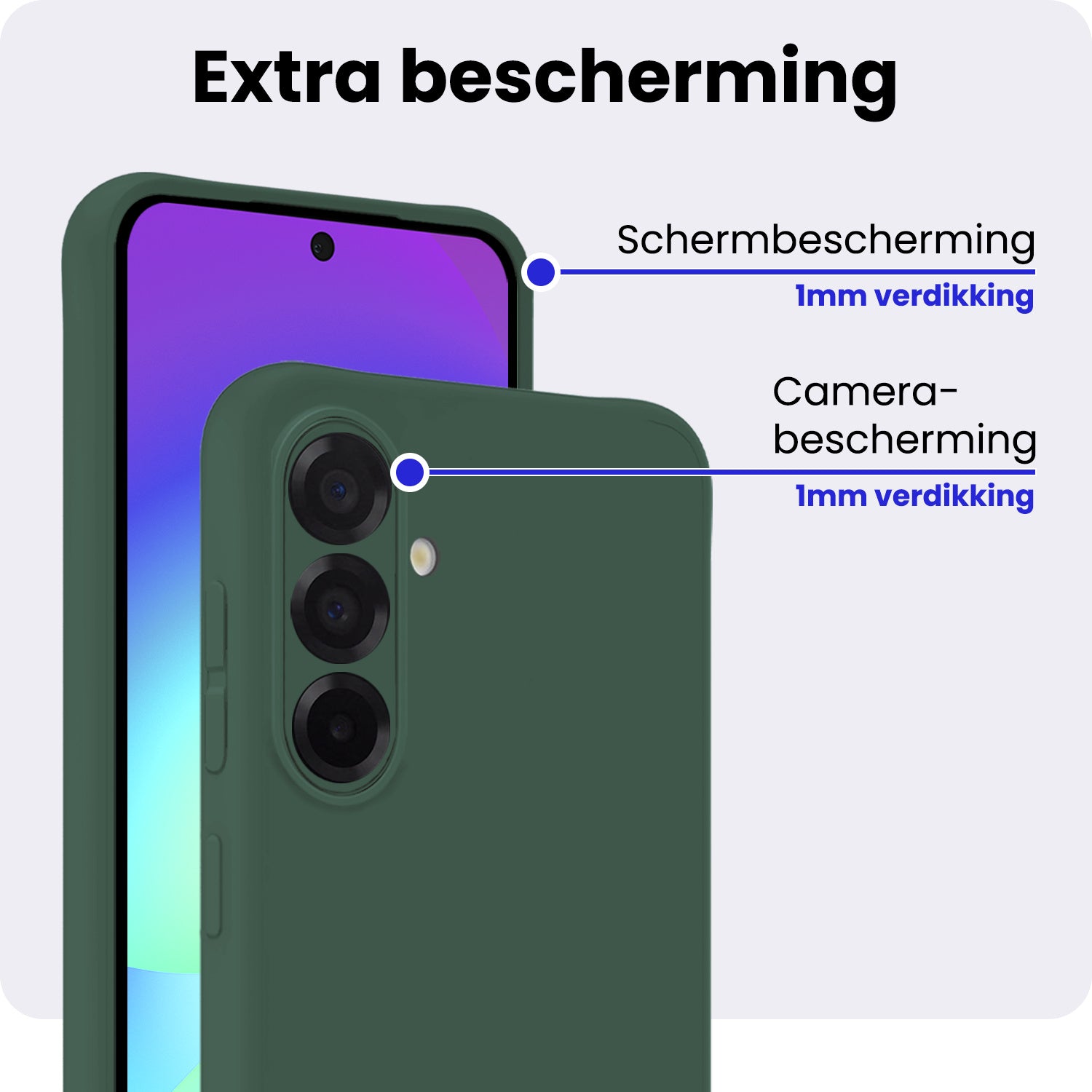 Dit siliconen hoesje voor de Samsung A56 is gemaakt van flexibel en schokabsorberend TPU-materiaal, waardoor het je toestel optimaal beschermt tegen vallen en stoten. De verhoogde randen rond het scherm en de camera voorkomen directe contactschade bij neerleggen op vlakke oppervlakken. Bovendien is het siliconen materiaal scheur- en slijtvast, wat een lange levensduur garandeert.