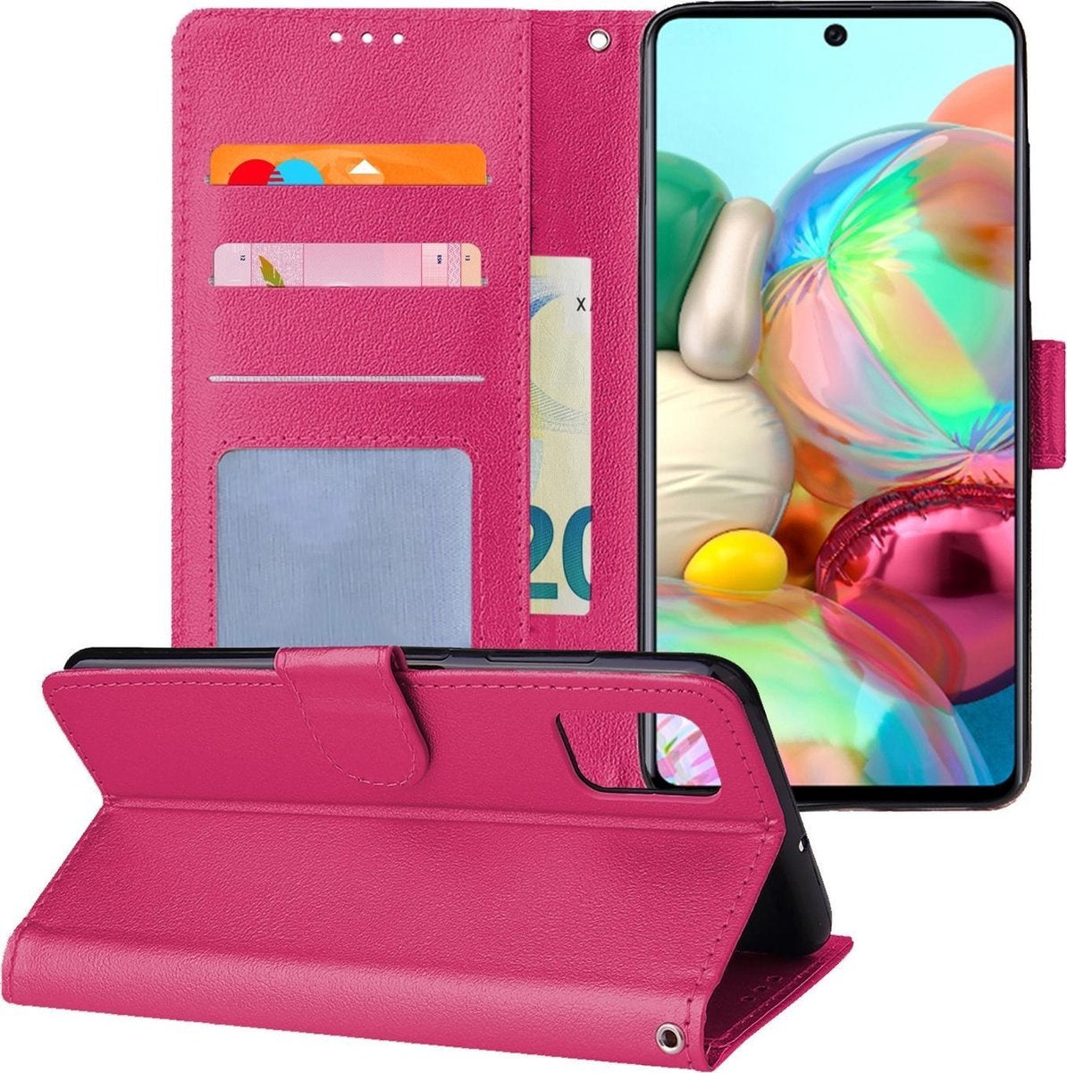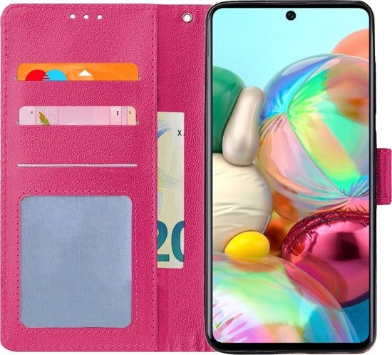 Samsung A71 Hoesje Bookcase Cover met Kaarthouder - Donkerroze