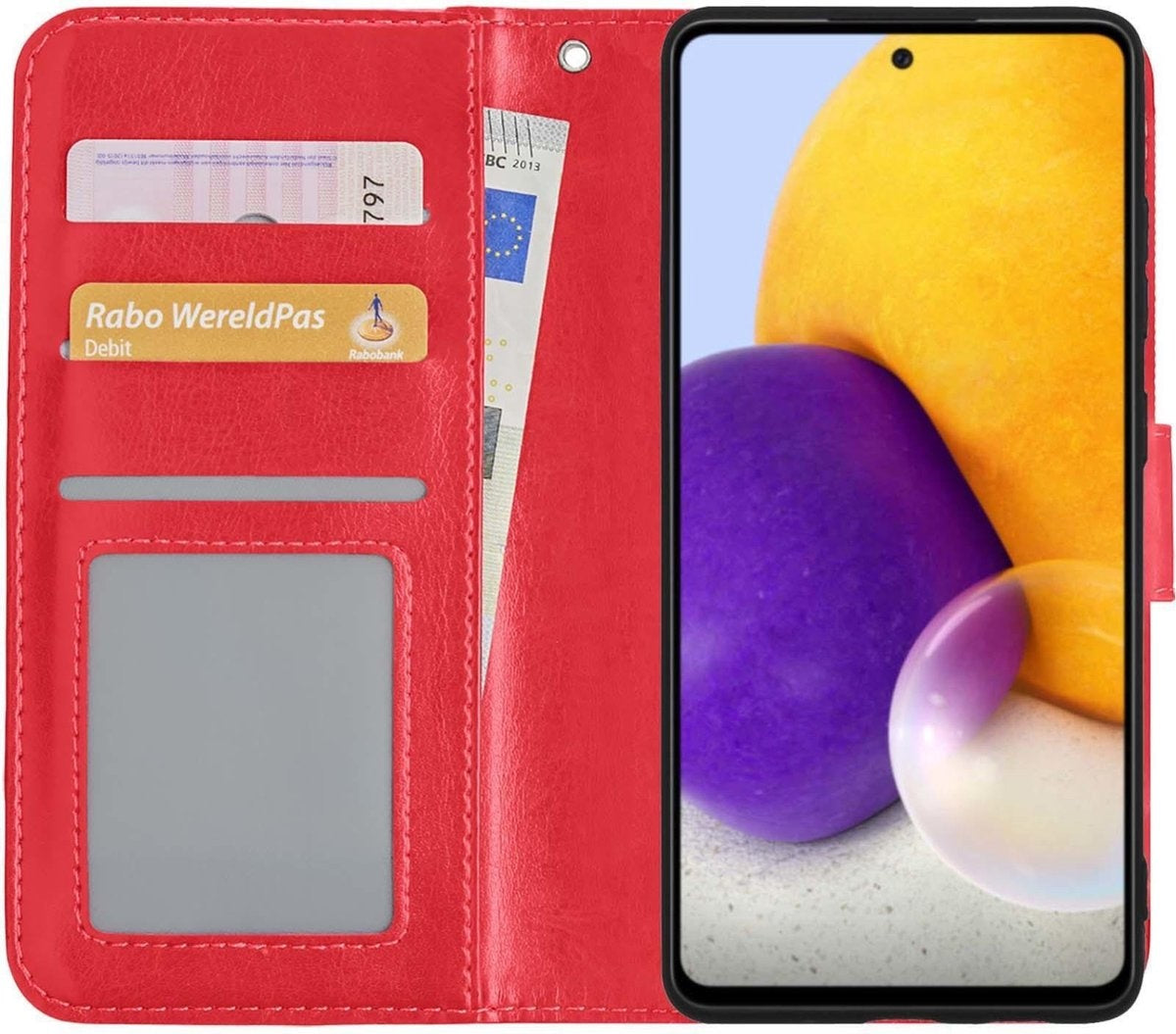 Samsung A72 5G Hoesje Bookcase Cover met Kaarthouder - Rood