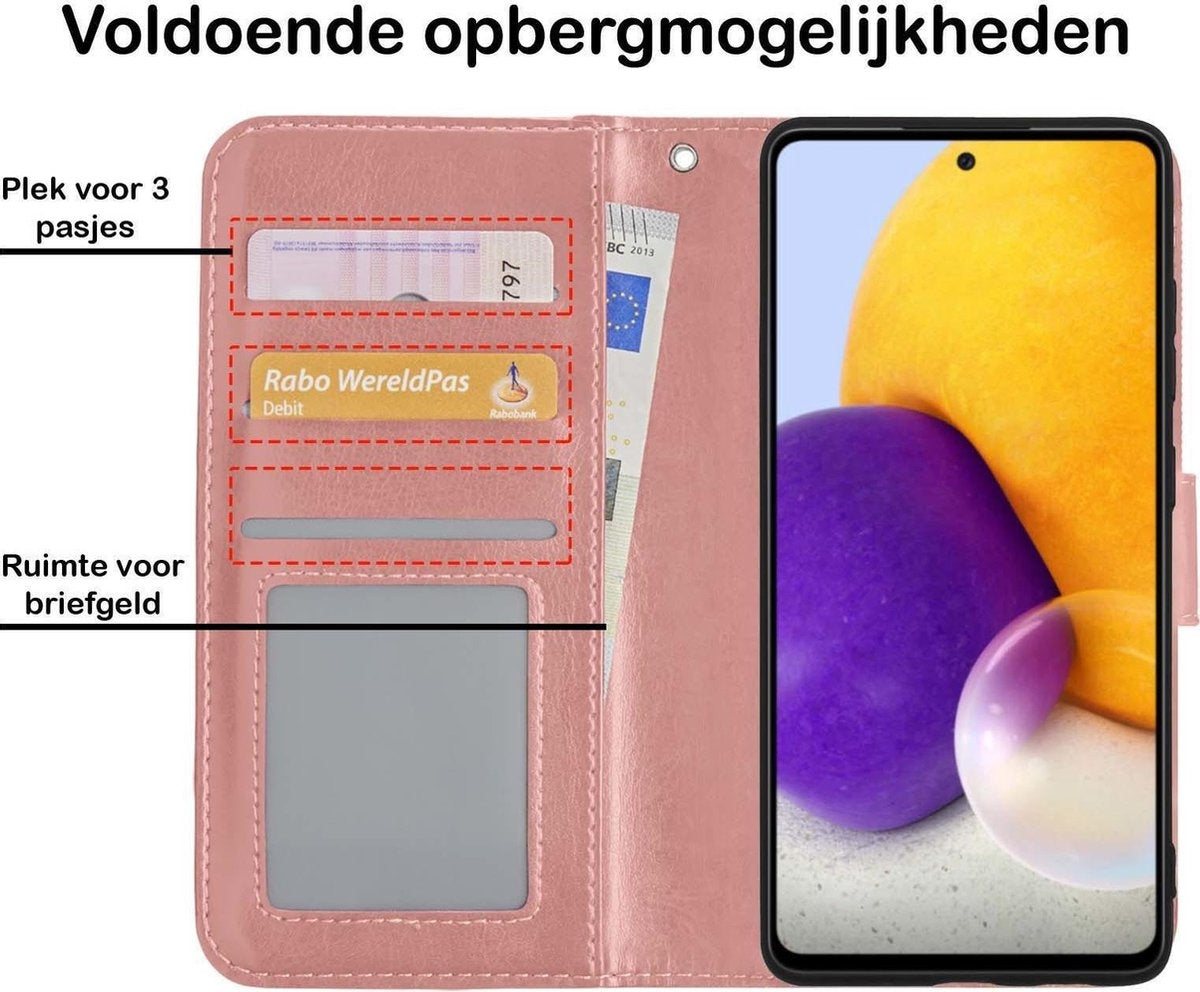 Samsung A72 5G Hoesje Bookcase Cover met Kaarthouder - Rosé goud