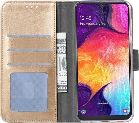 Samsung Galaxy A50 Hoesje Bookcase Cover met Kaarthouder - Goud