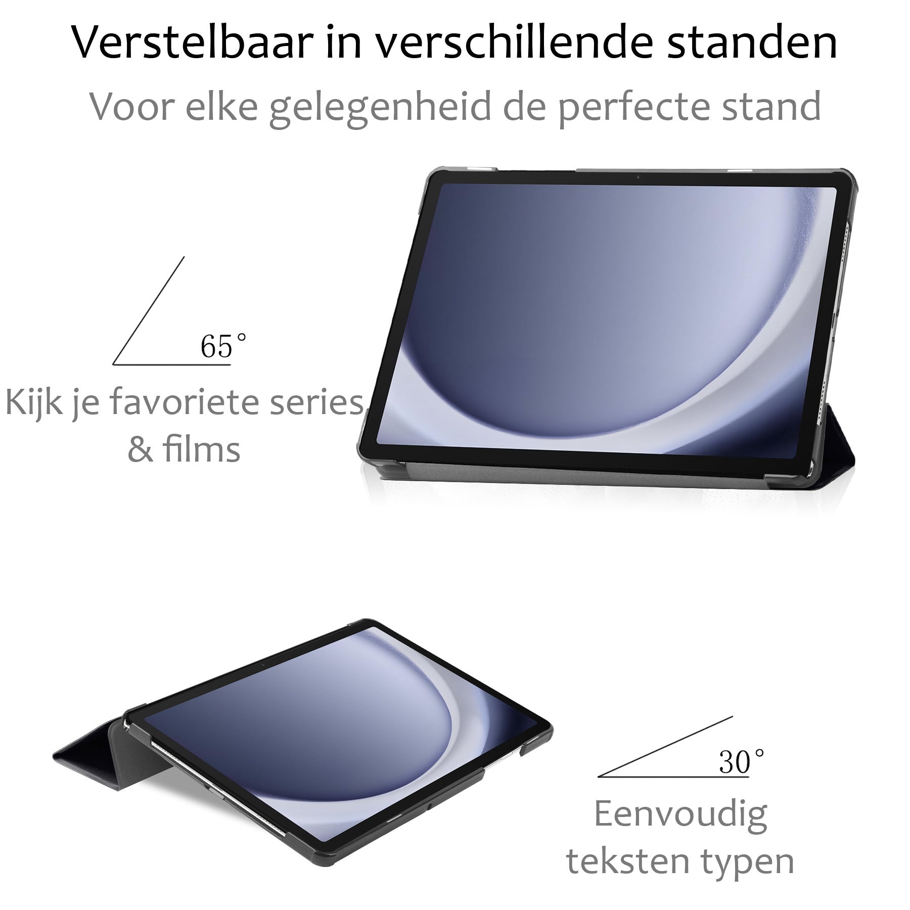 Dankzij het slimme drievoudige ontwerp vouw je de hoes eenvoudig om in twee verschillende kijkhoeken. Ideaal om handsfree video's te bekijken, te typen of te videobellen.