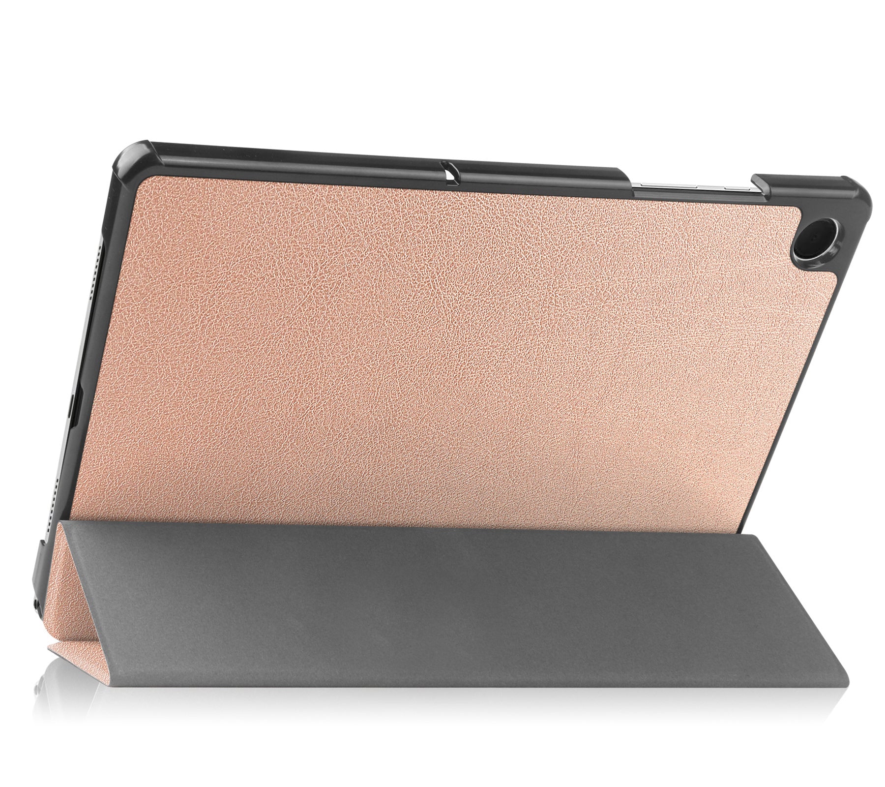 Maak je Samsung Galaxy Tab A9 Plus compleet met deze functionele en stijlvolle Trifold Bookcase Hoes - rosé gouden. **Bestel nu en ervaar de perfecte balans tussen bescherming en gebruiksgemak!**
