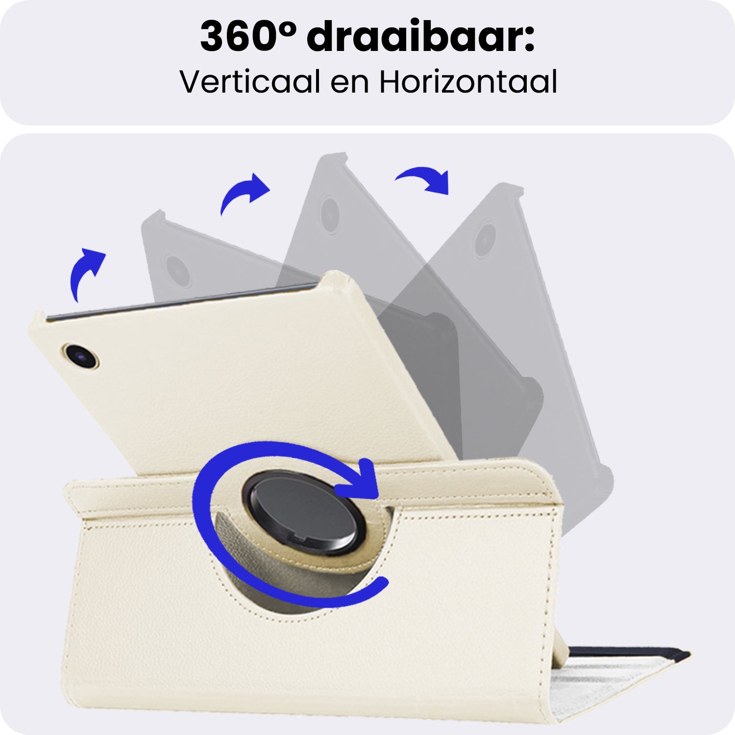 Maak je Samsung Galaxy Tab A9 compleet met deze functionele en stijlvolle 360° Draaibare Bookcase Hoes - witte. **Bestel nu en ervaar ultiem gebruiksgemak en bescherming!**