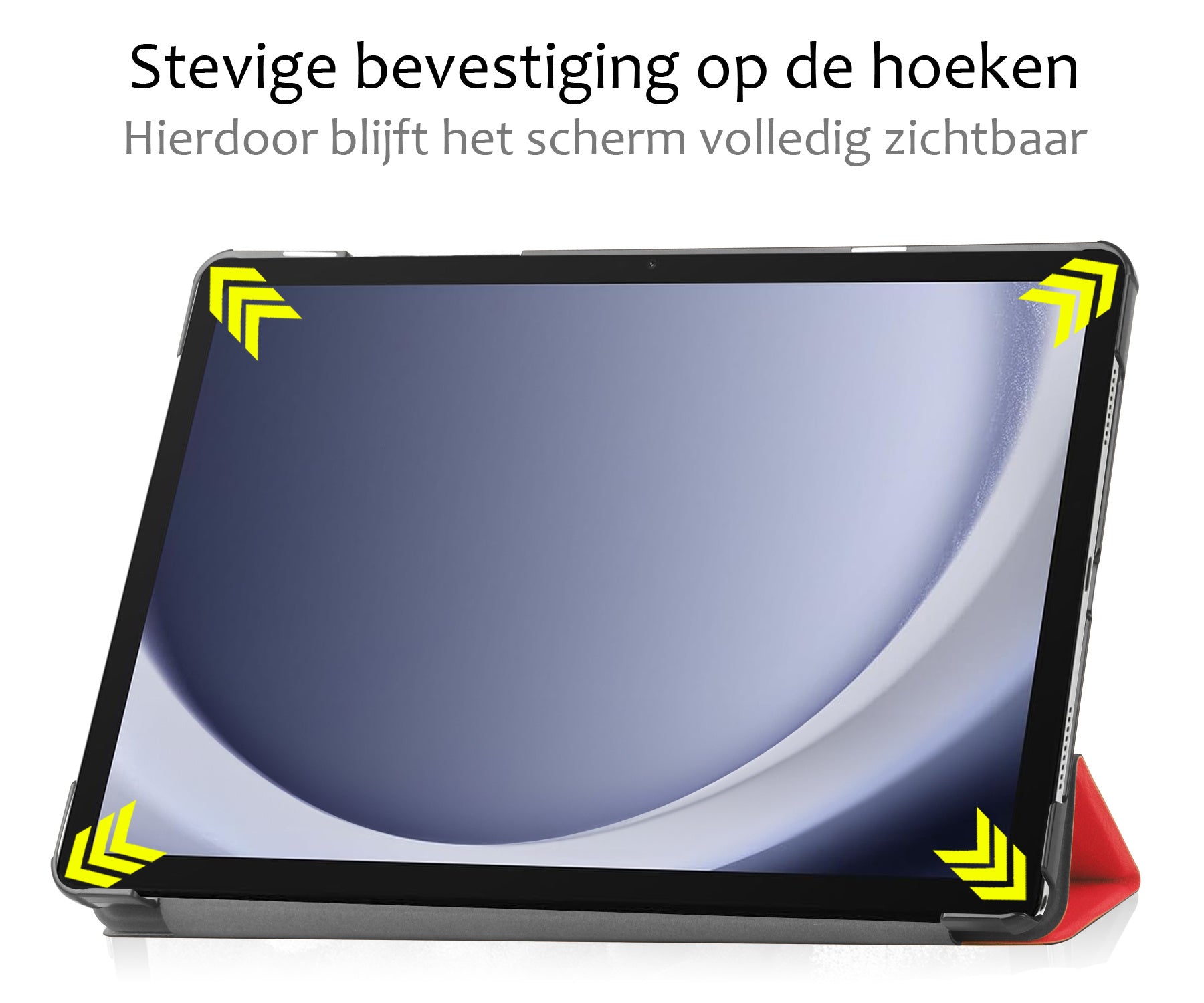 Maak je Samsung Galaxy Tab A9 compleet met deze functionele en stijlvolle Trifold Bookcase Hoes - rode. **Bestel nu en ervaar de perfecte balans tussen bescherming en gebruiksgemak!**