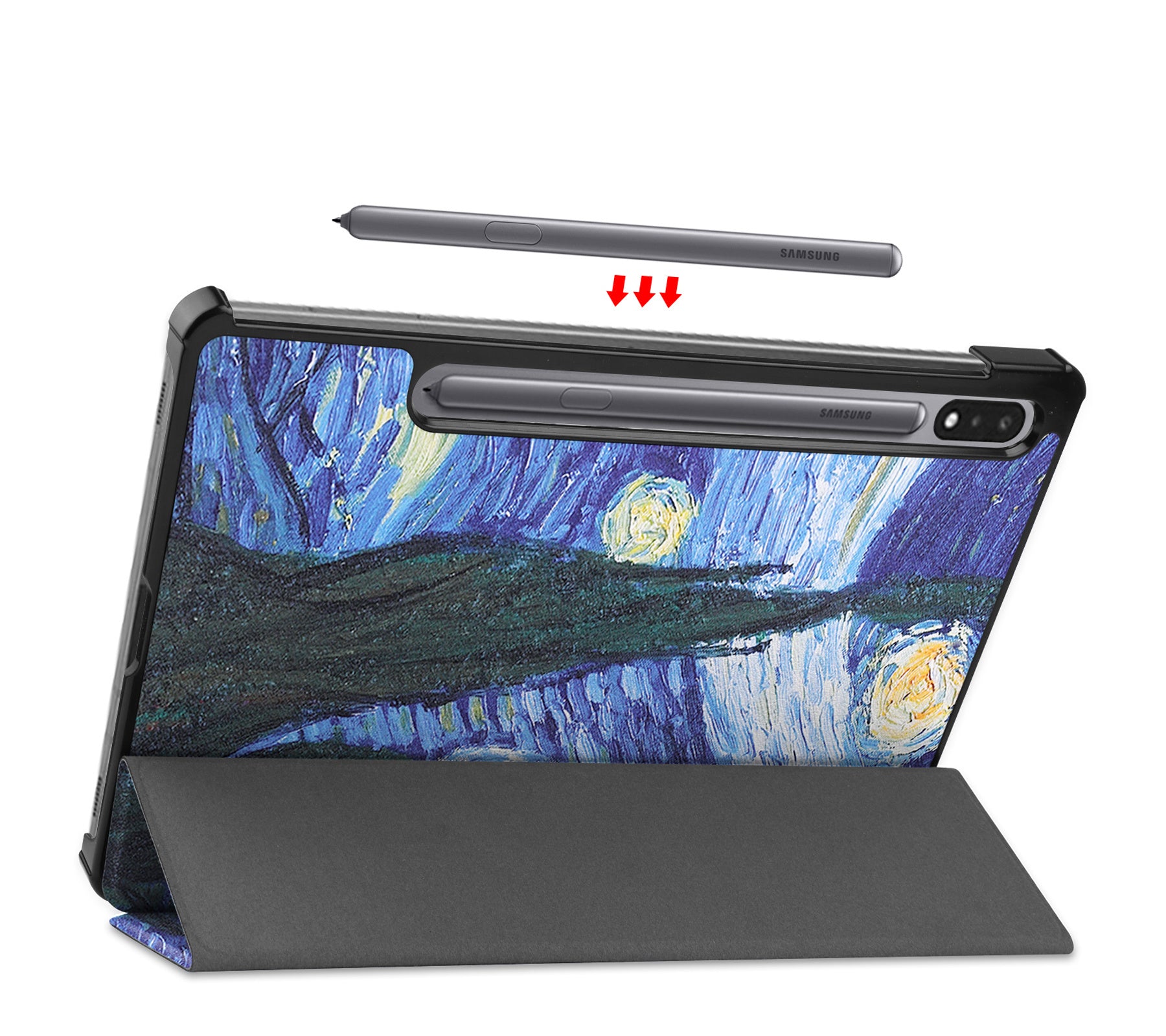 Maak je Samsung Galaxy Tab S8 compleet met deze functionele en stijlvolle Trifold Bookcase Hoes - sterrenhemel-patroon. **Bestel nu en ervaar de perfecte balans tussen bescherming en gebruiksgemak!**