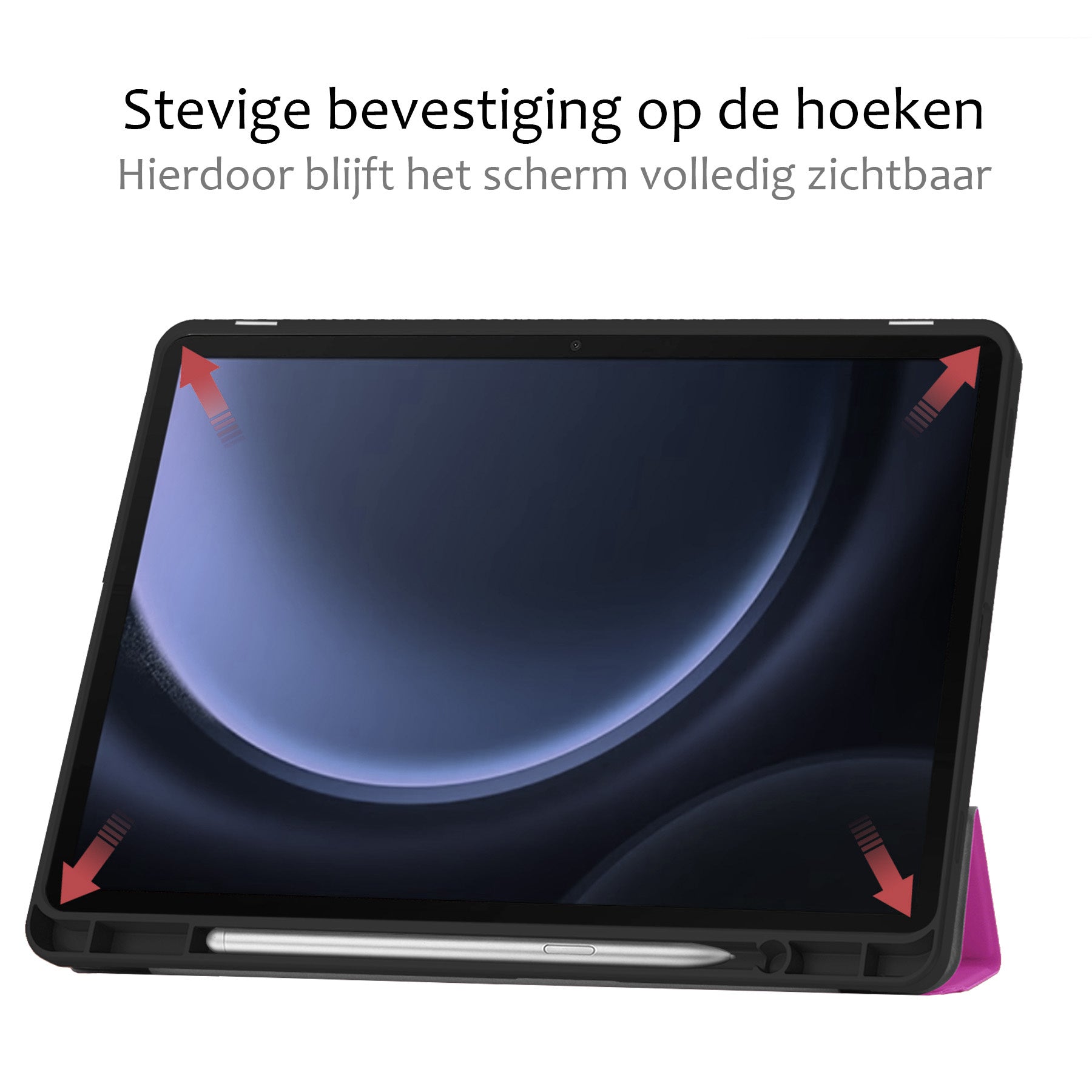Samsung Galaxy Tab S9 FE Plus Trifold Bookcase Hoes met Penhouder voor S Pen - Paars