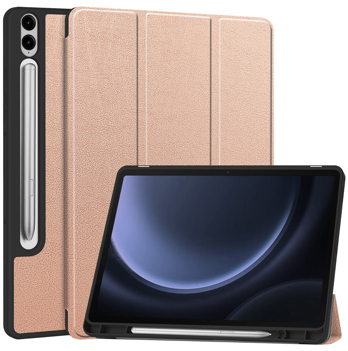 Samsung Galaxy Tab S9 FE Plus Trifold Bookcase Hoes met Penhouder voor S Pen - Rosé goud