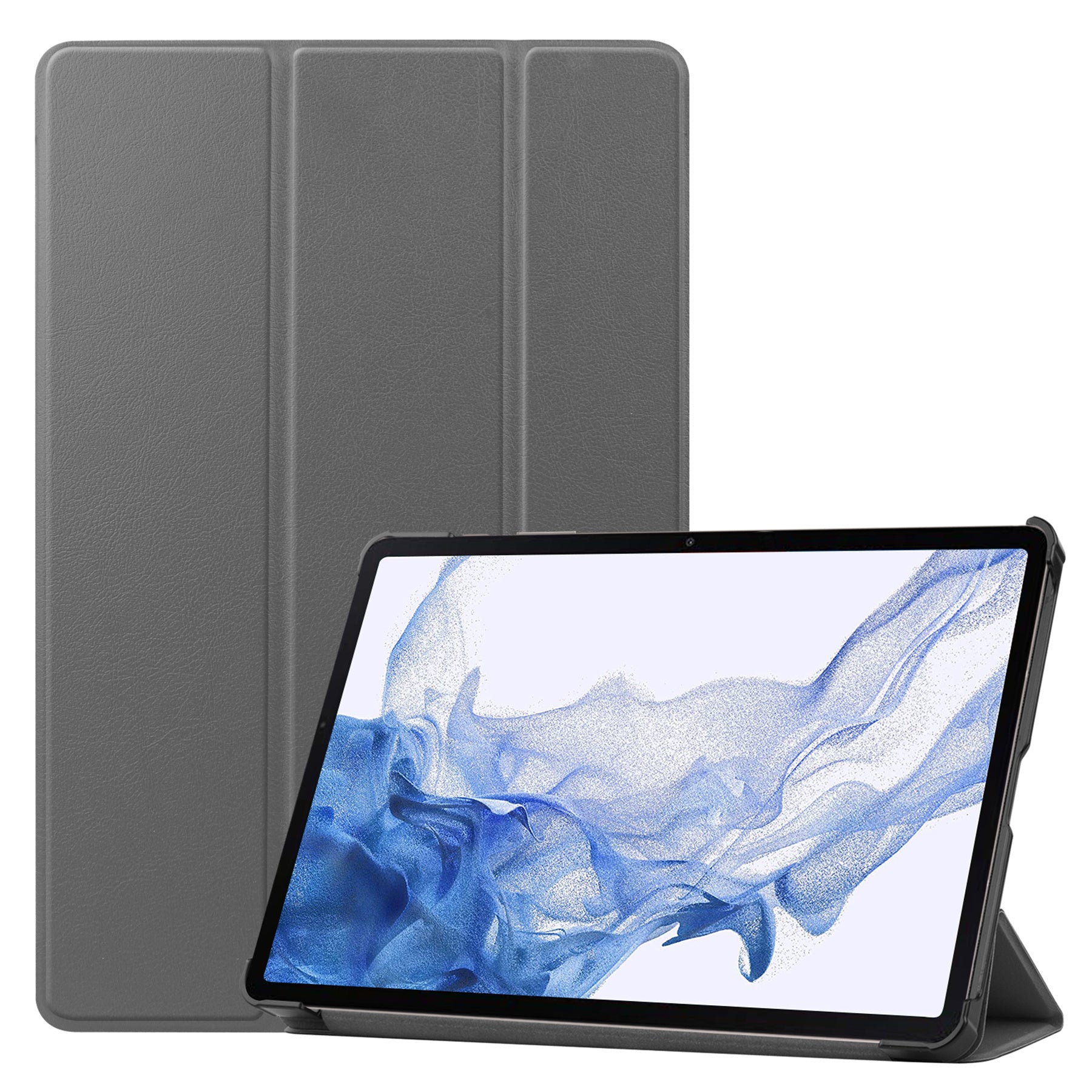 Maak je Samsung Galaxy Tab S9 compleet met deze functionele en stijlvolle Trifold Bookcase Hoes - grijze. **Bestel nu en geniet van ultiem gemak en bescherming!**