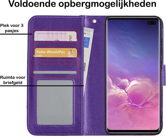 Samsung S10 Hoesje Bookcase Cover met Kaarthouder - Paars
