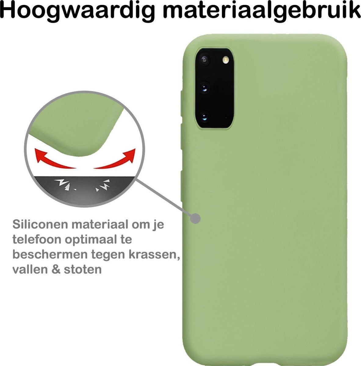 Dit siliconen hoesje voor de Samsung S20 is gemaakt van flexibel en schokabsorberend TPU-materiaal, waardoor het je toestel optimaal beschermt tegen vallen en stoten. De verhoogde randen rond het scherm en de camera voorkomen directe contactschade bij neerleggen op vlakke oppervlakken. Bovendien is het siliconen materiaal scheur- en slijtvast, wat een lange levensduur garandeert.