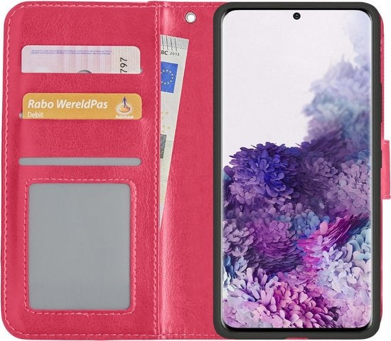 Samsung S20 Ultra Hoesje Bookcase Cover met Kaarthouder - Donkerroze