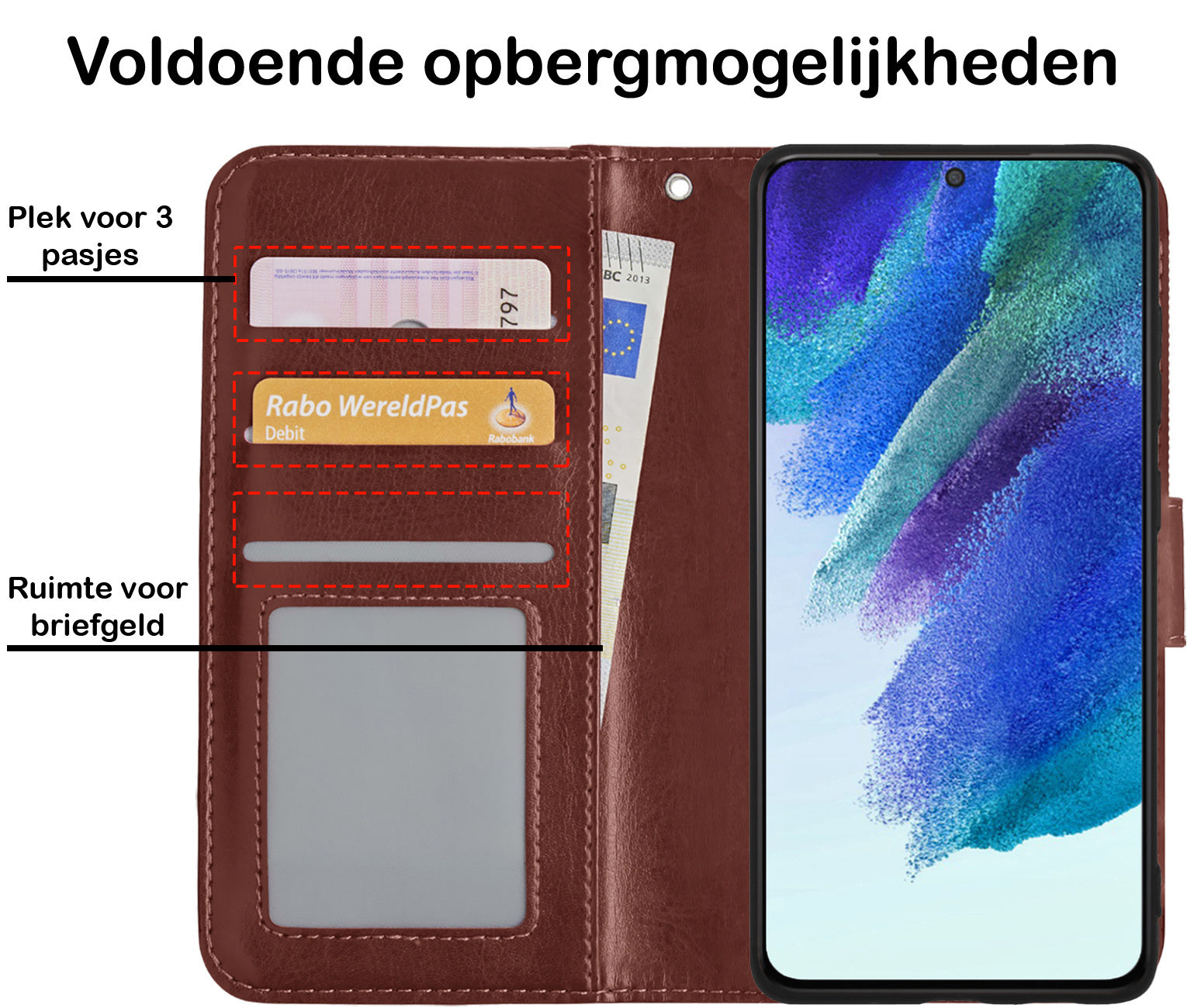 Samsung S21 FE Hoesje Bookcase Cover met Kaarthouder - Bruin